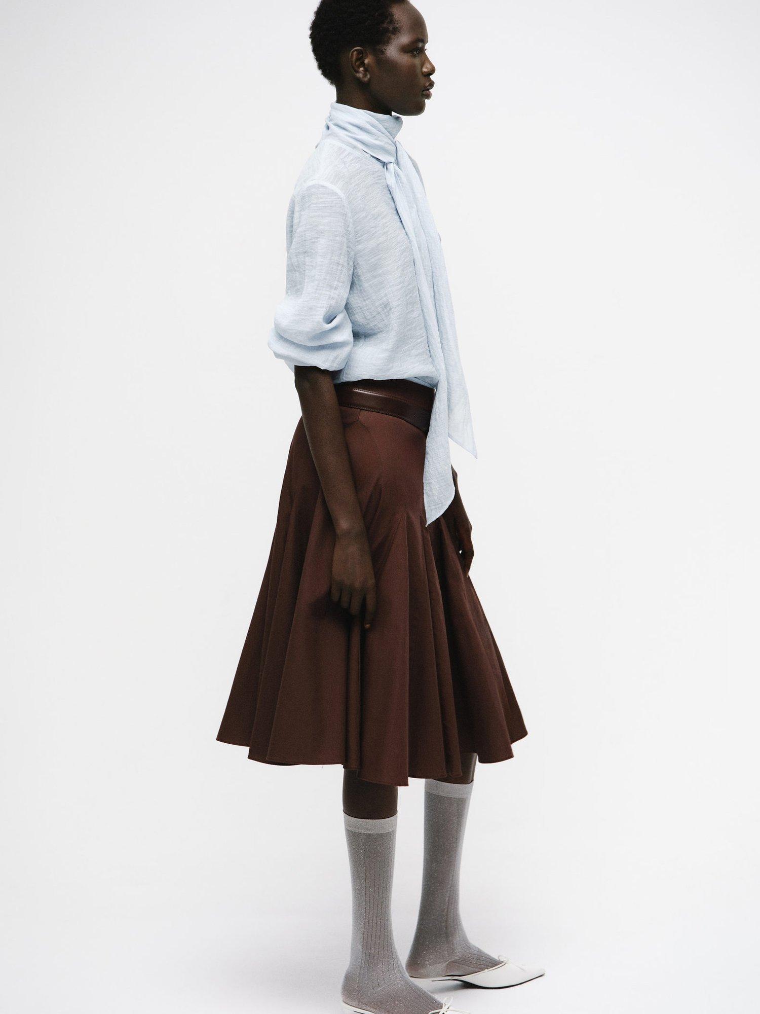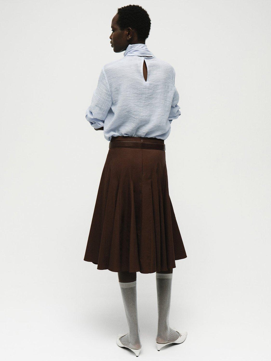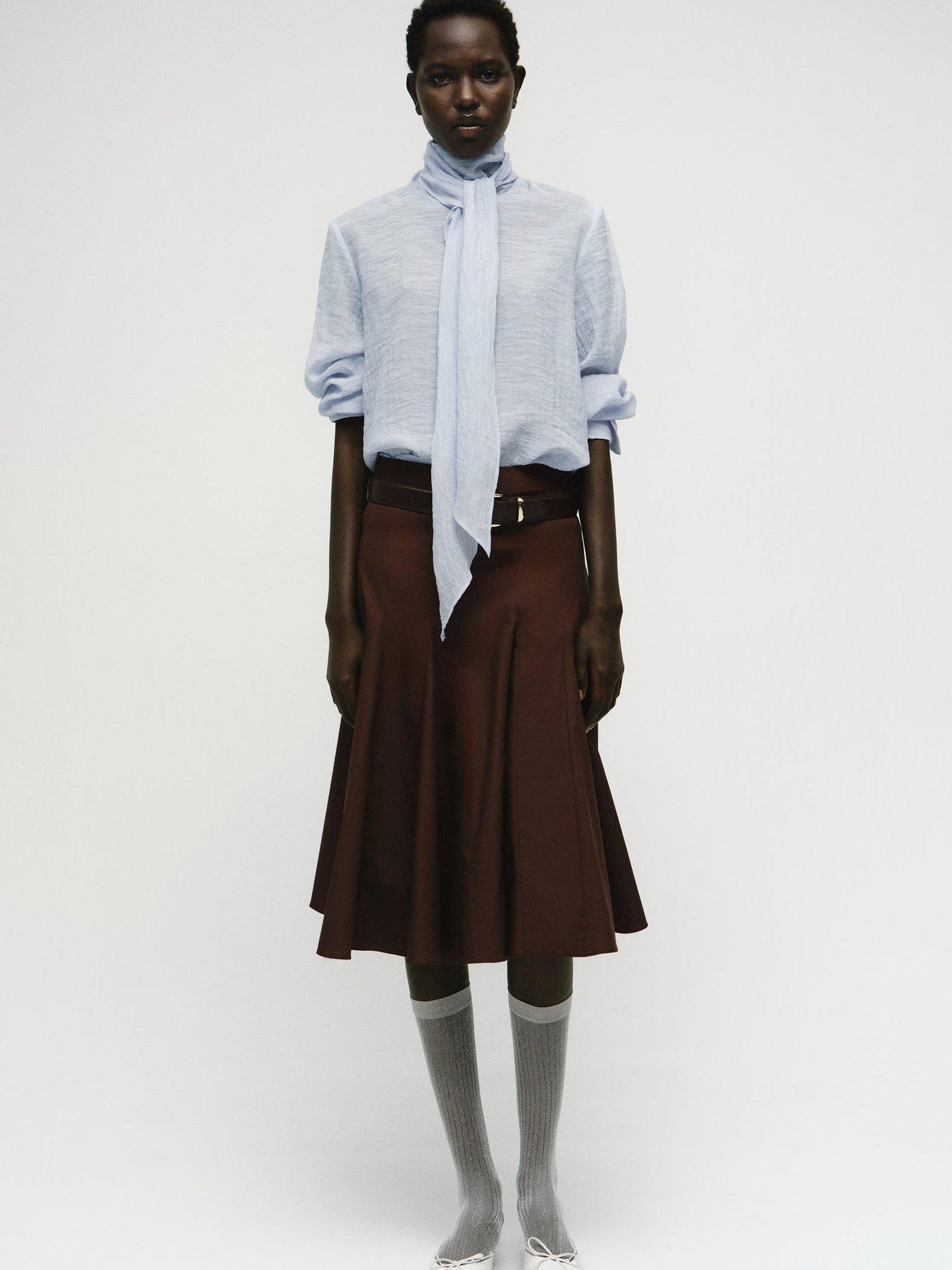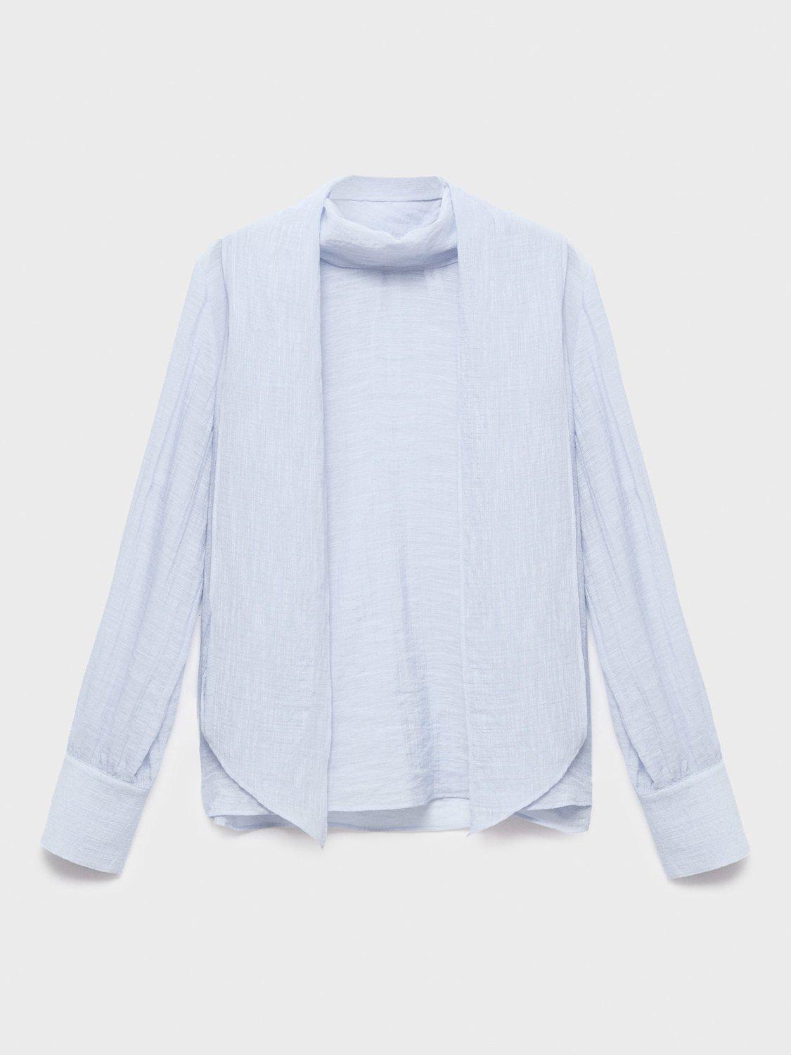 A high wrap neck blouse from Mango, with long sleeves and made from a drapey viscose fabric that's easy to dress up or down.