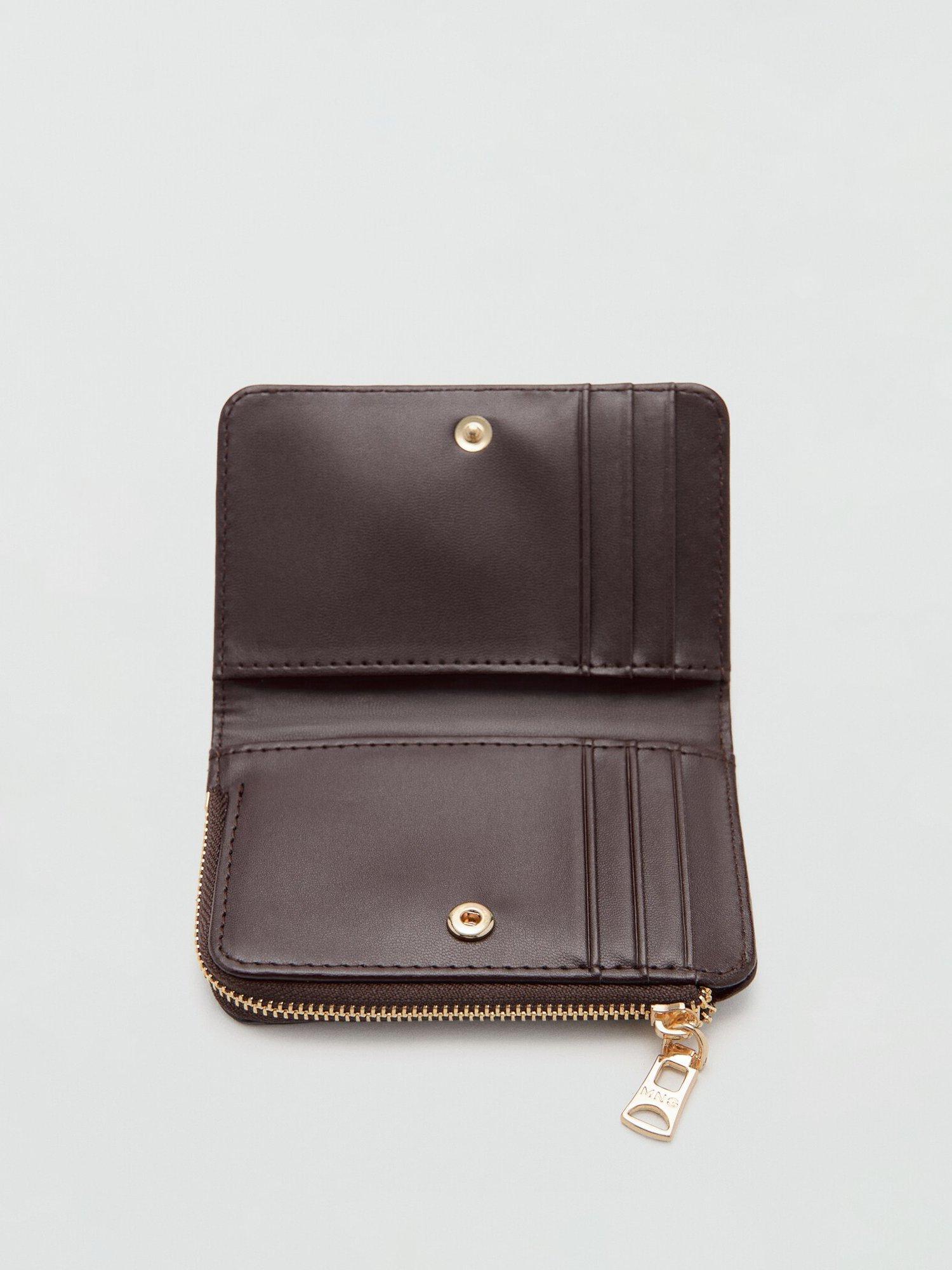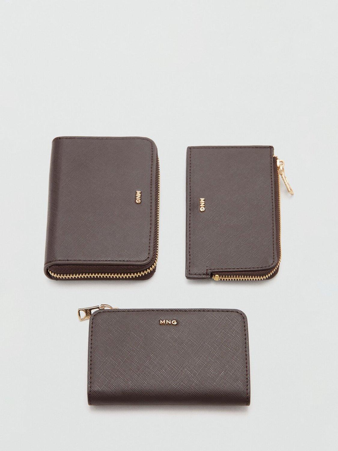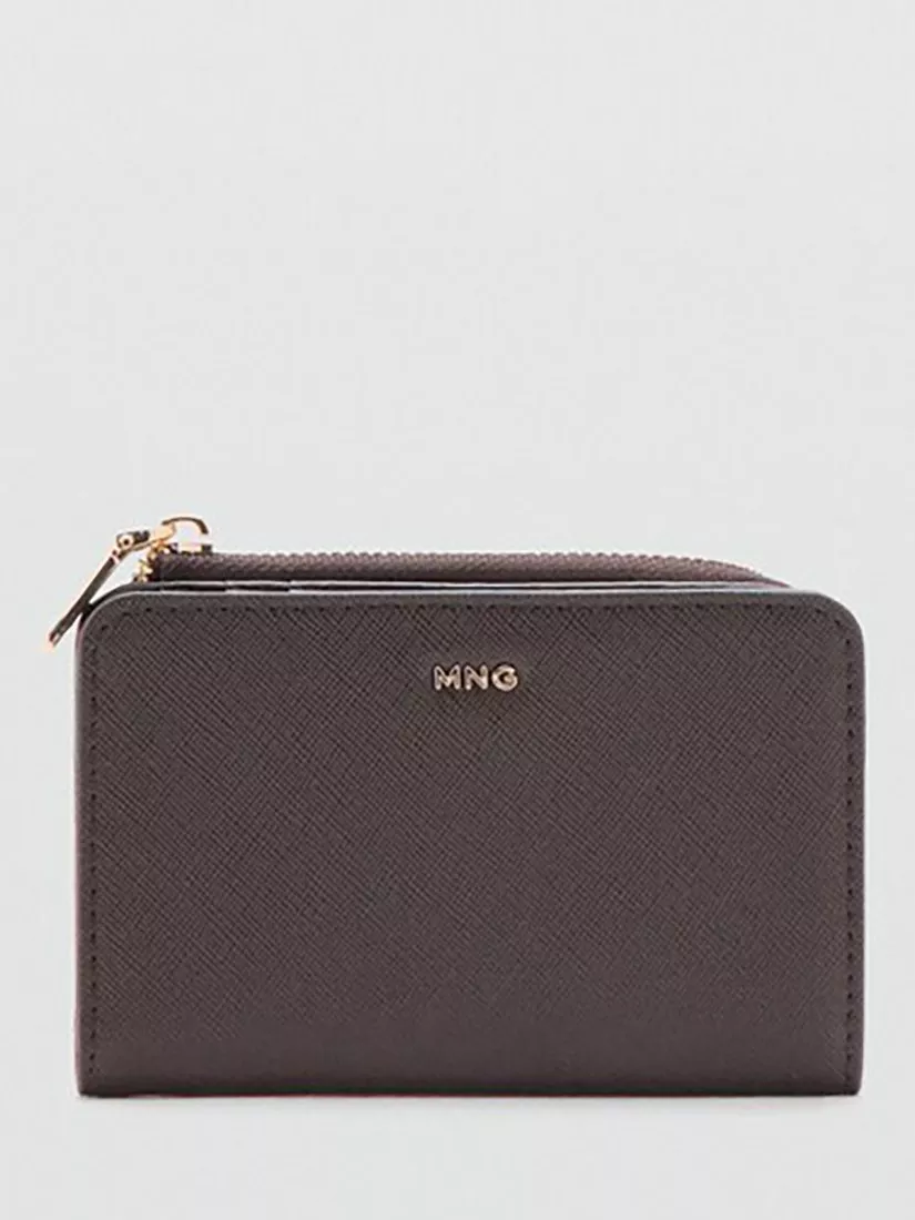 MangoTextured Zip Around Purse, Chocolate