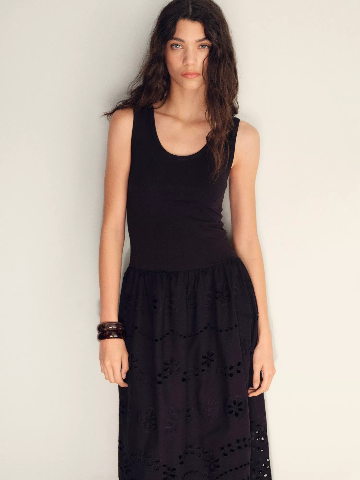 In an easy to wear A-line shape, this cut out midi dress from Mango is fabricated in a soft cotton blend. Keeping things simple with a round neckline, this sleeveless style is elevated with intricate embroidery.