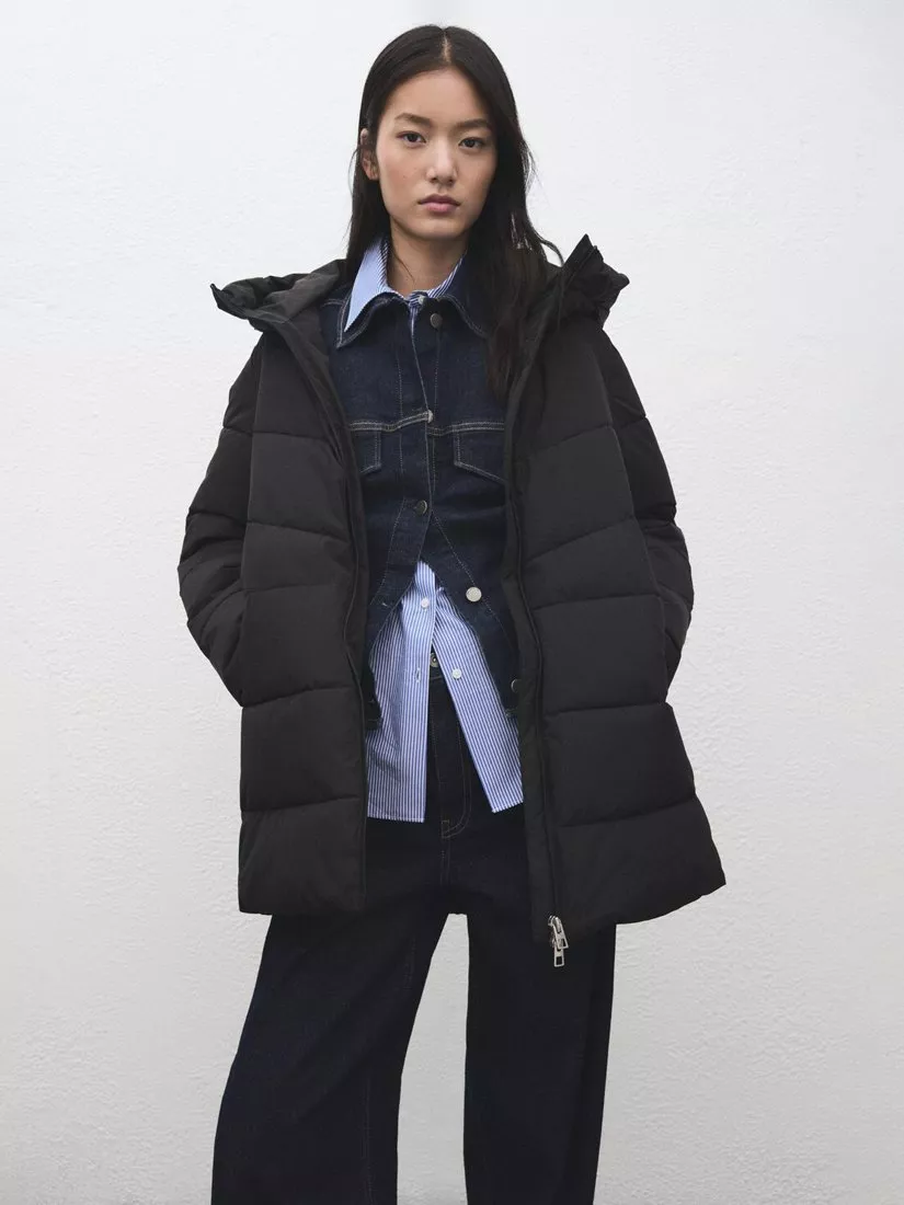 MangoTokyo Water Repellent Puffer Jacket, Black