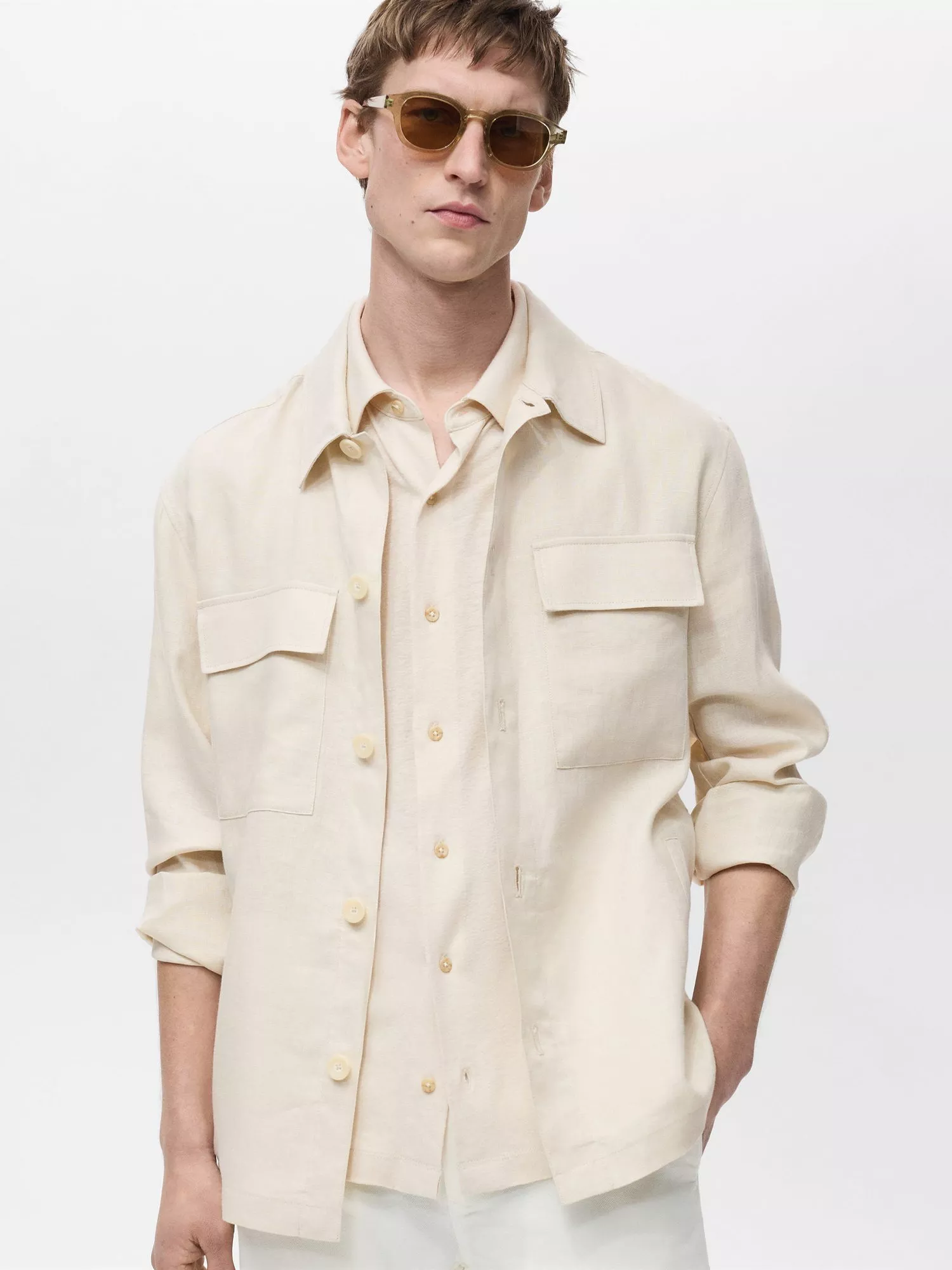 MangoTom Linen Regular Fit Utility Shacket, Light Beige