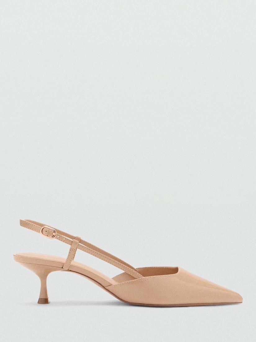 MangoTonio Patent Leather Effect Kitten Heel Court Shoes, Beige