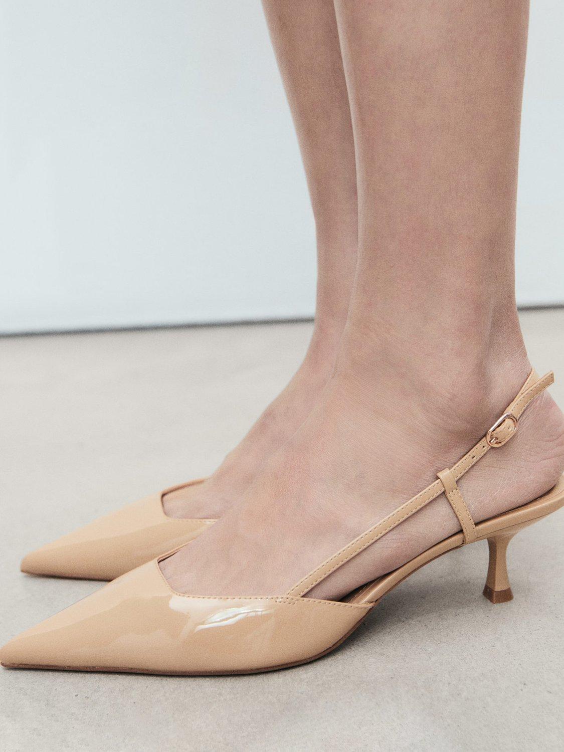 From Mango, these Tonio court shoes feature a faux leather patent finish, a cute kitten heel, pointed toes and a buckled ankle strap. Completed with inner lining for all-day comfort.