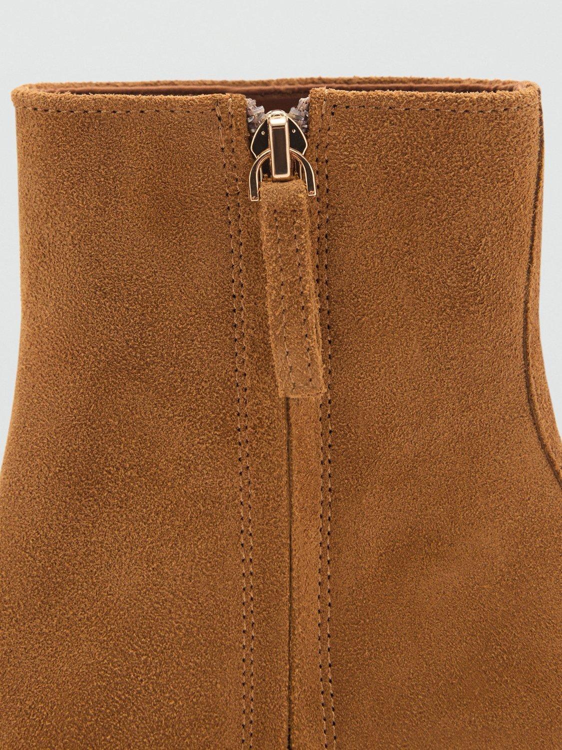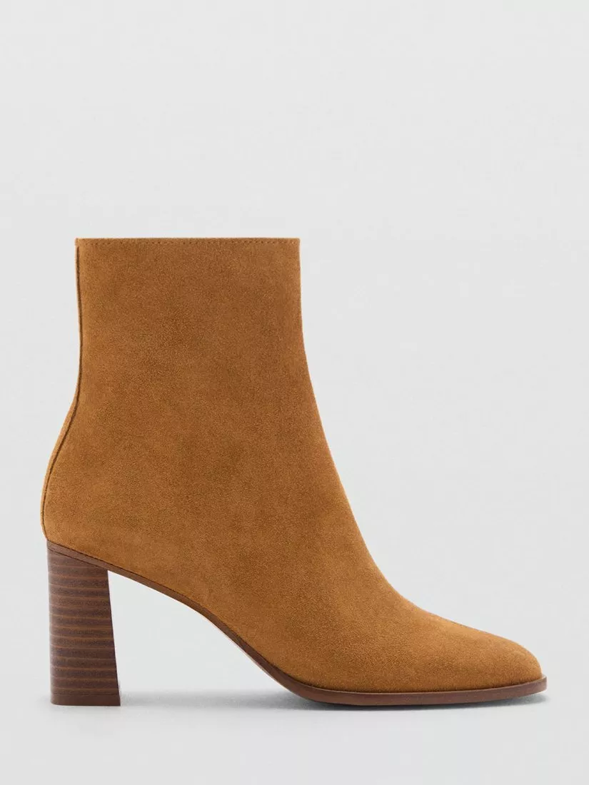 A year-round staple, this pair of ankle boots from Mango is made from bovine suede with a side zip fastening. Sitting on a block funnel heel, they are finished with a rounded toe.