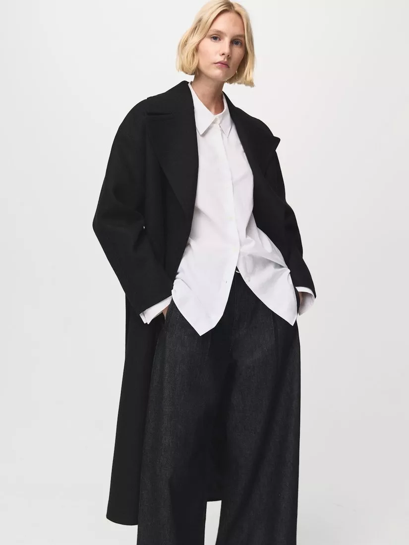Wrap yourself in this belted midi overcoat from Mango, designed to add structure and warmth to your day. Long sleeves and a sharp collar let you step out or stay in with confidence, no matter the occasion.