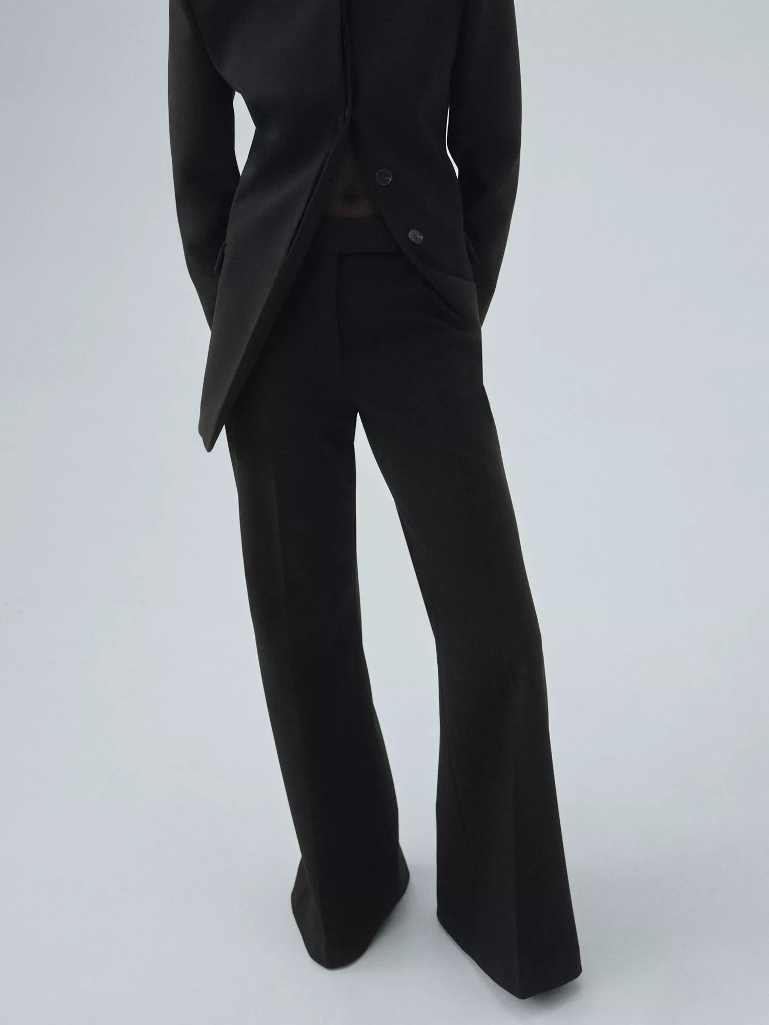 Exaggerated lines meet a power-like stance in these wide-leg trousers by Mango. They sit mid rise with a zip fly and regular length hems.