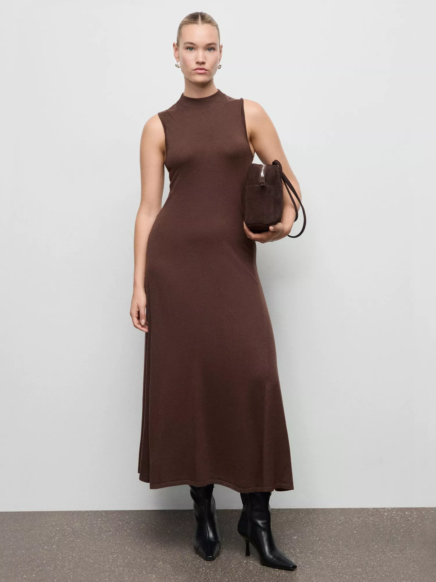 A maxi A-line dress from Mango. The high neck keeps you snug, while its sleeveless design lets you layer creatively for warmth or wear alone for simplicity.
