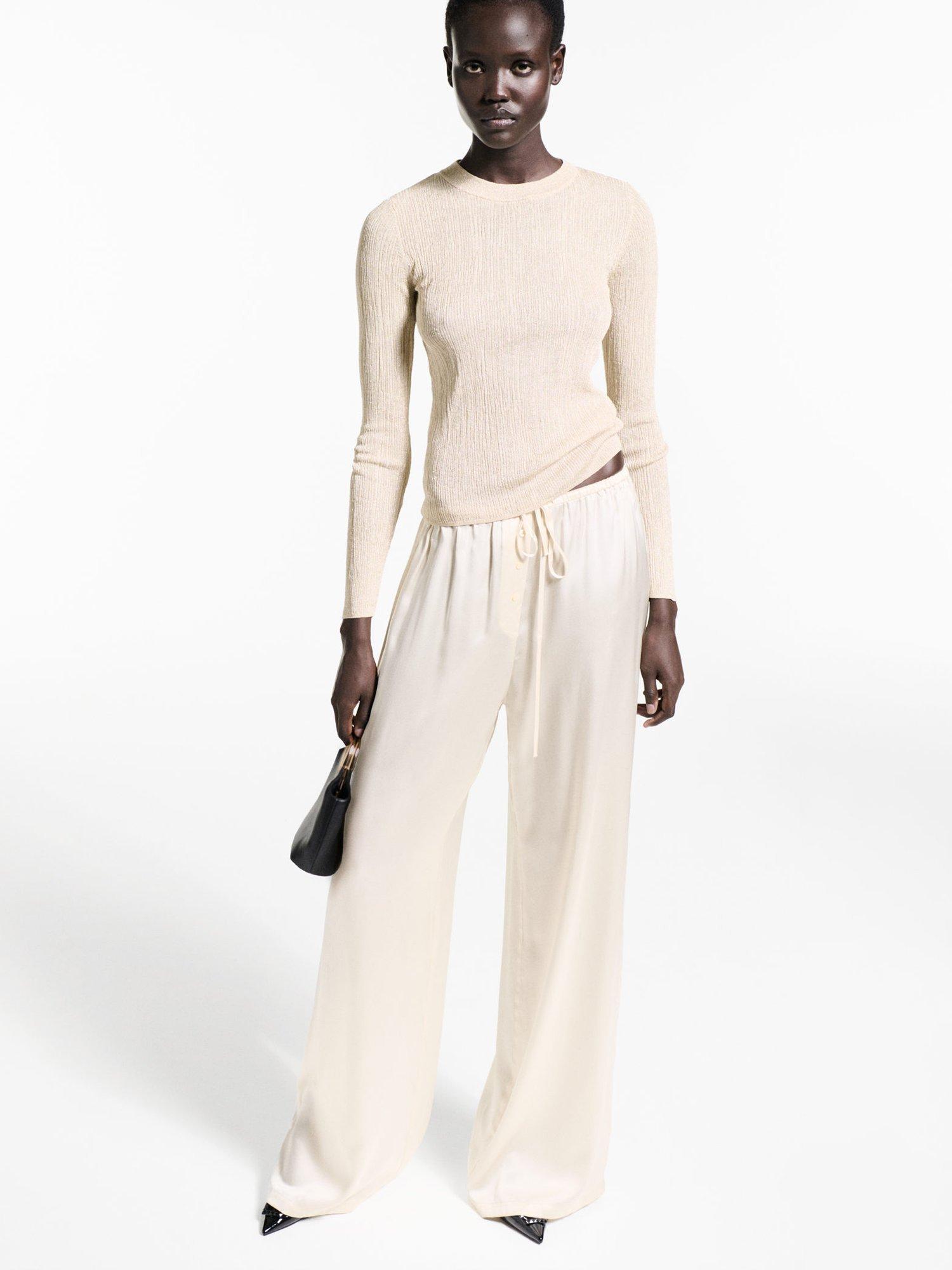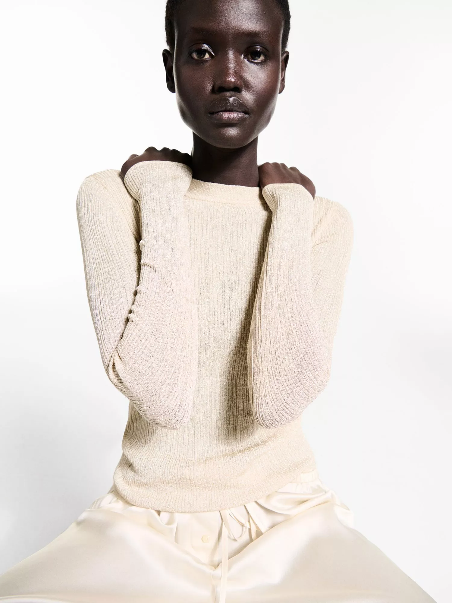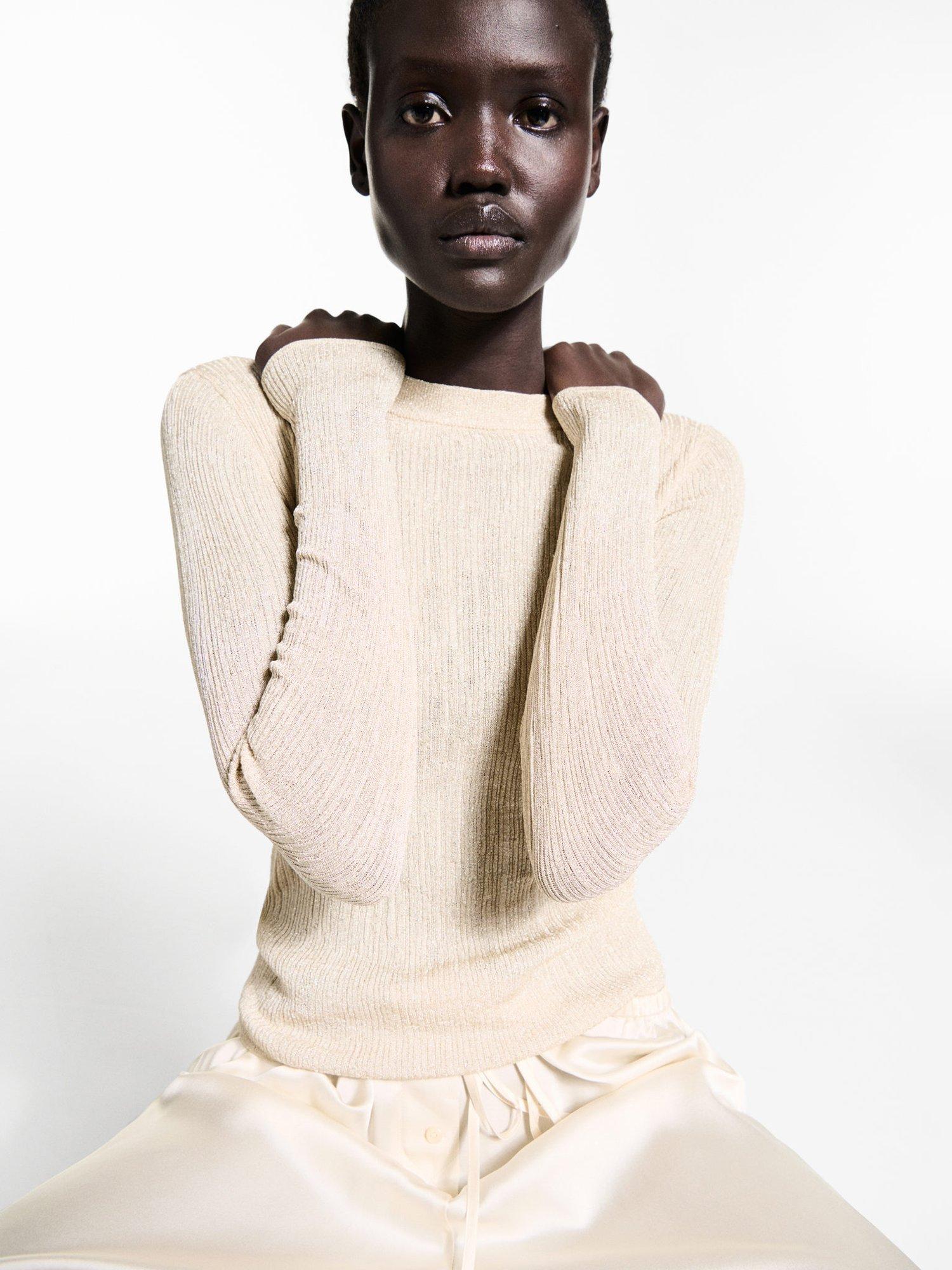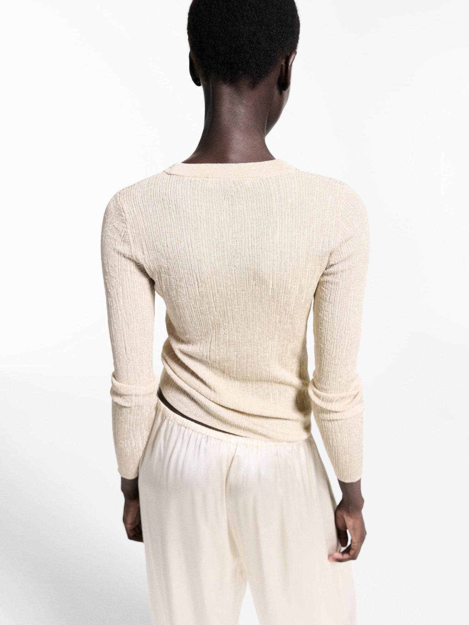 Nice and simple with a round neckline and long sleeves, this lightweight metallic jumper by Mango will keep up with you whatever you do in a robust and long-lasting fabric.
