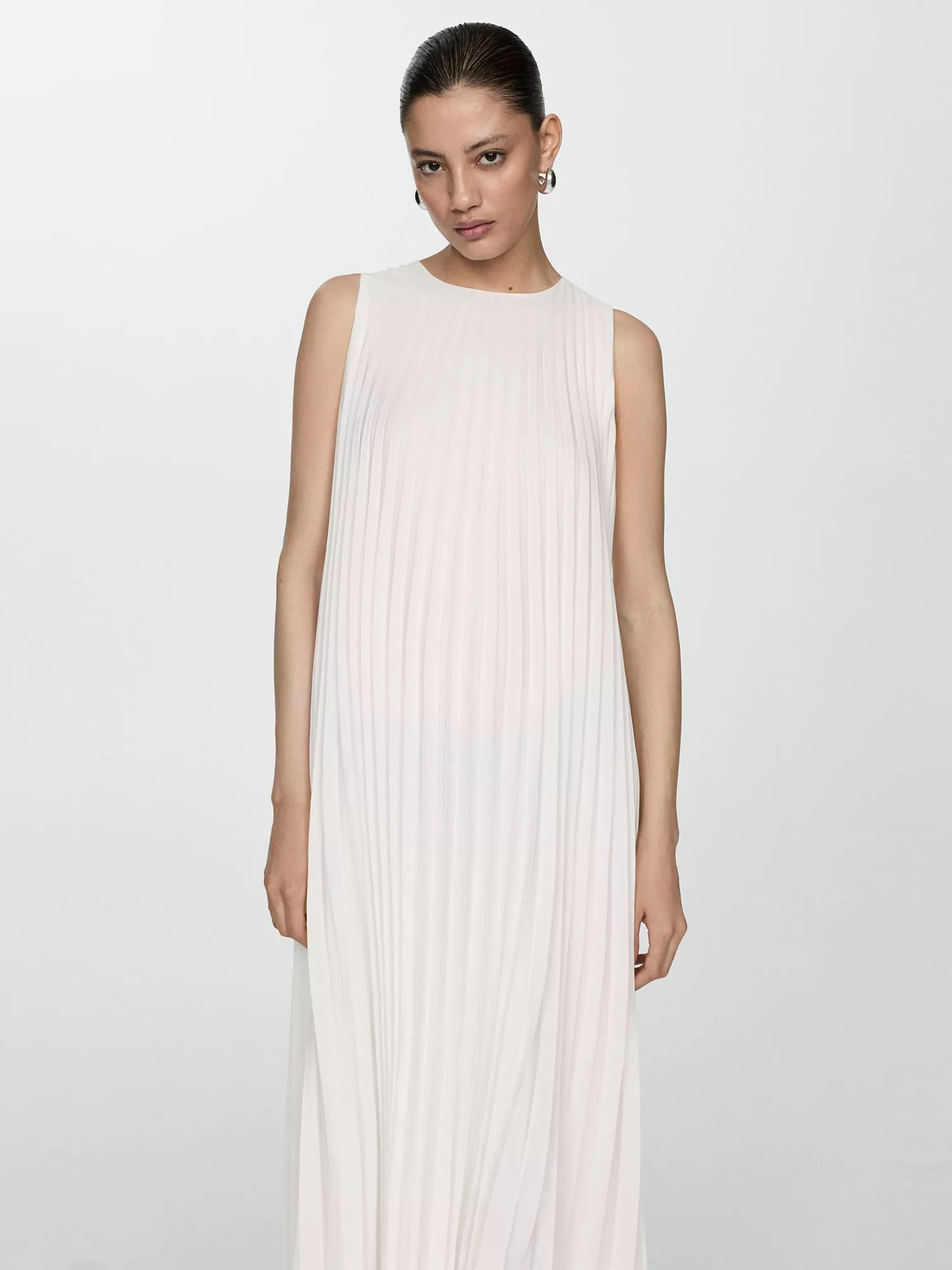 Noting a playful pleated design, this mid-length dress from Mango is made from a lightweight fabric. Keeping things simple with a round neckline, this sleeveless style is kept trend-free so that it'll sit in your closet for years to come.