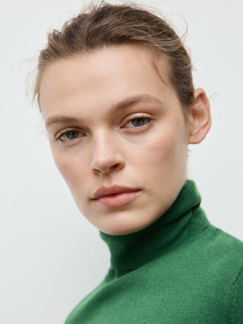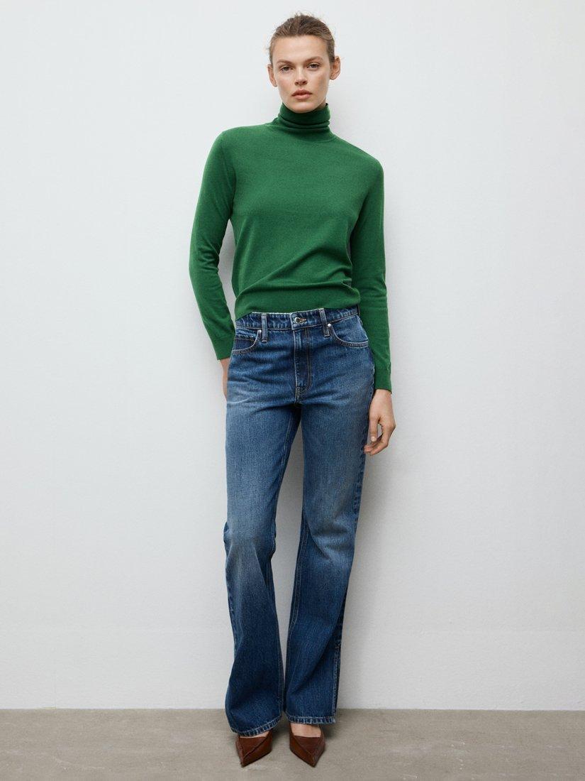A fine-knit turtleneck jumper. Its soft viscose blend keeps you warm, making it perfect for layering or wearing alone.