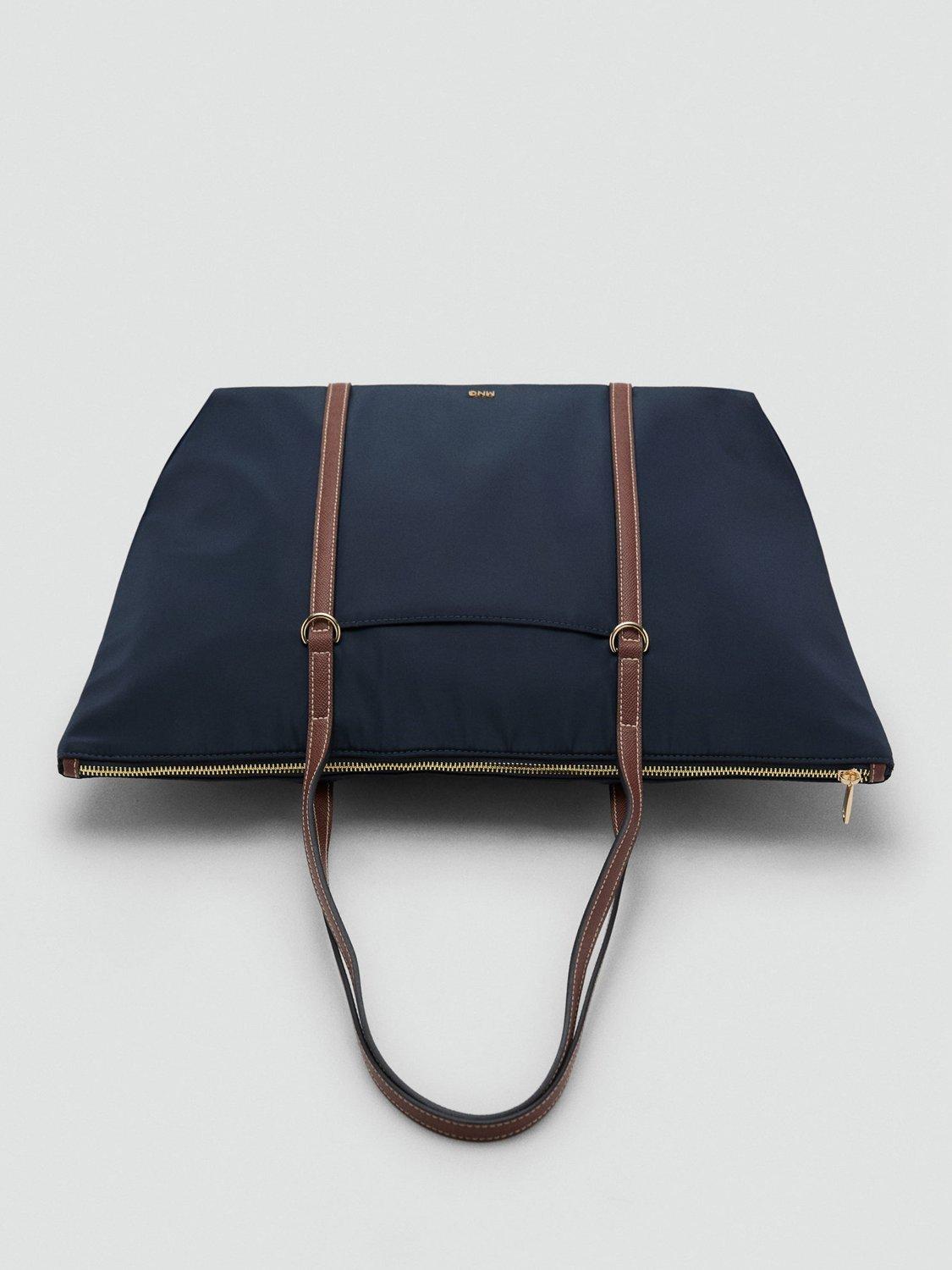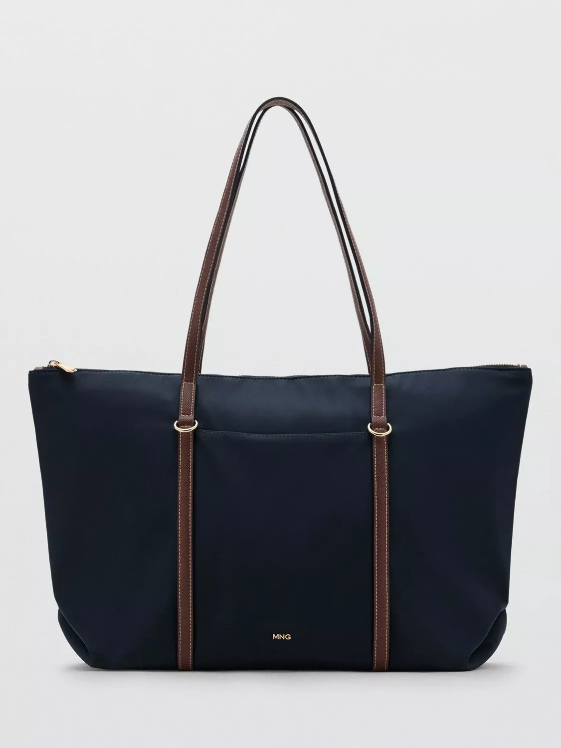 Designed with a spacious interior, this shopper-style handbag features double handles, a shoulder strap, zipper closure, and outer pocket. Finished with contrasting trims to match the straps.