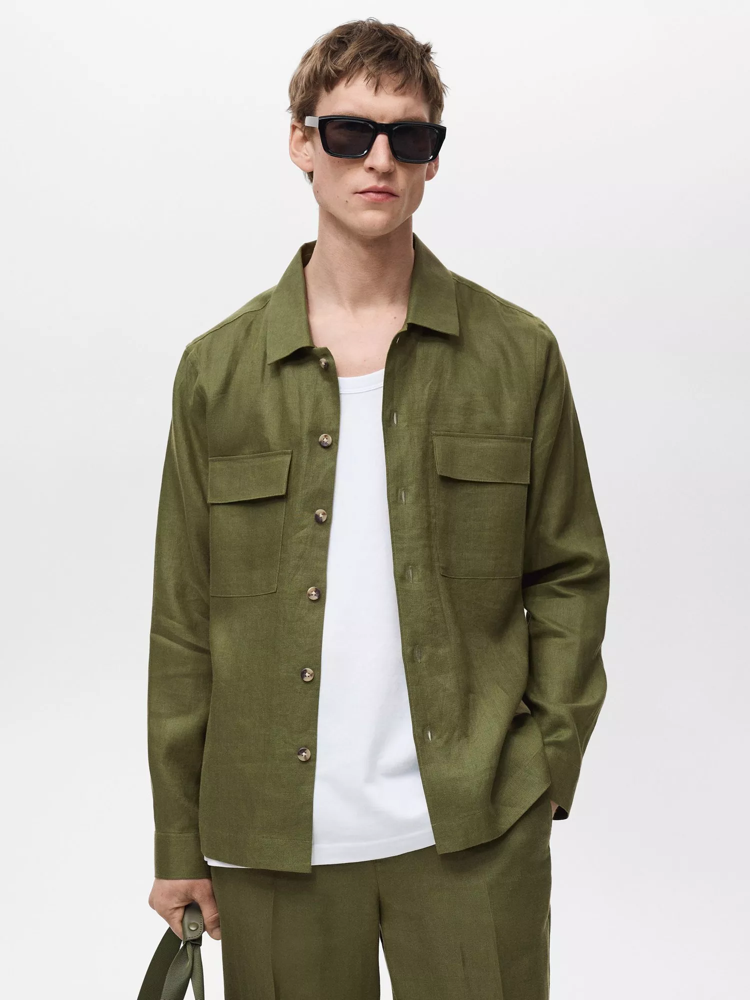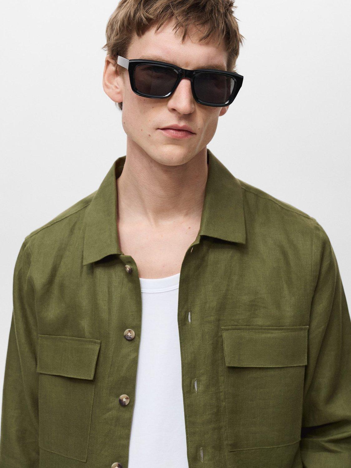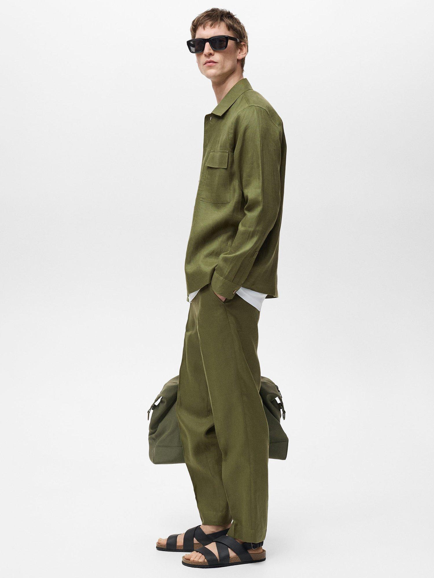 MangoUmbria Linen Regular Fit Shirt, Mid Green