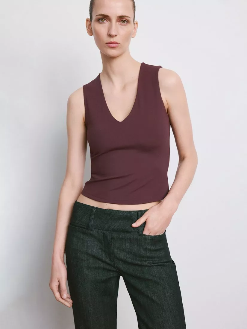 The base to so many looks, this tank top by Mango is designed with a V-neck and is ready to be layered or worn solo.