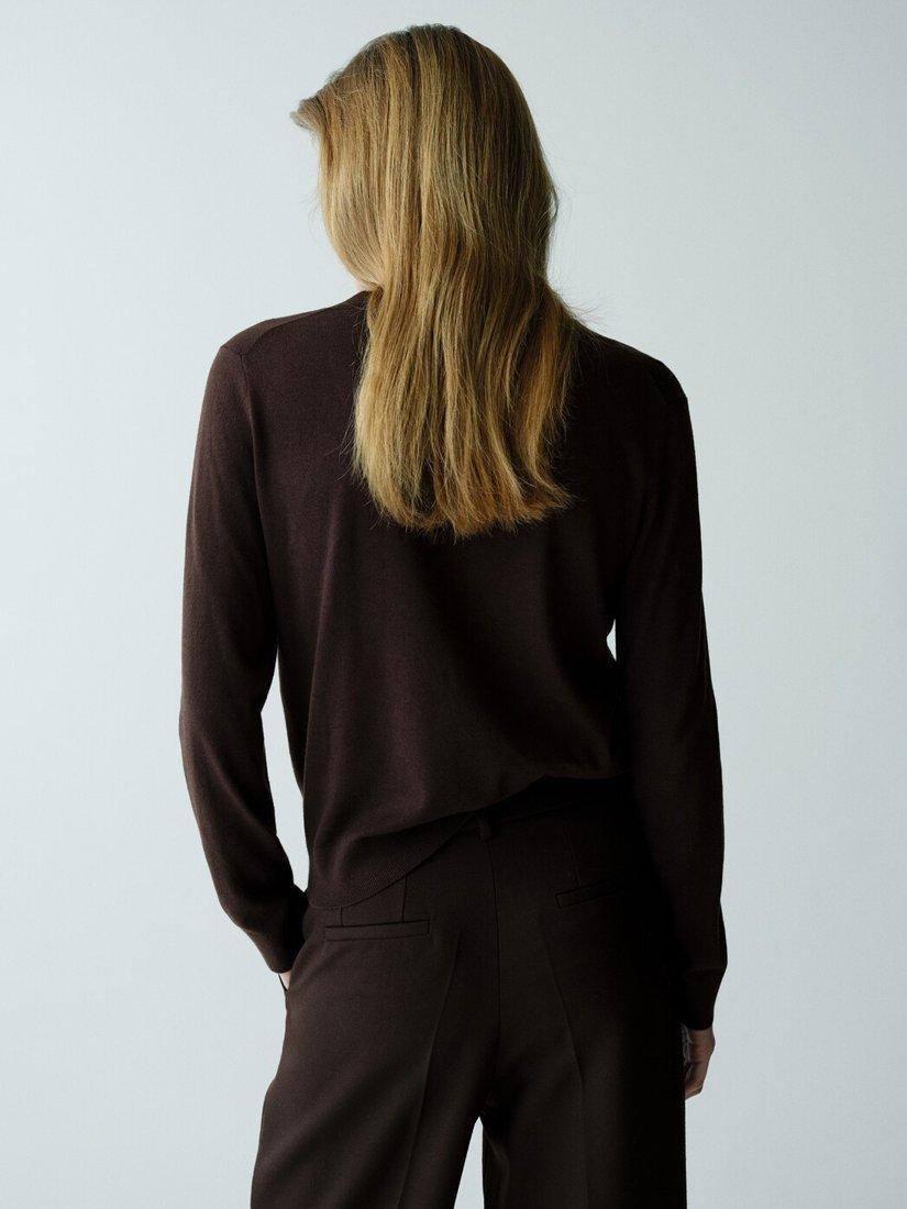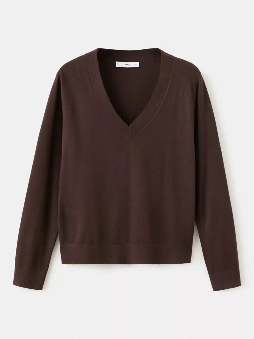 MangoV-Neck Long Sleeve Jumper, Chocolate