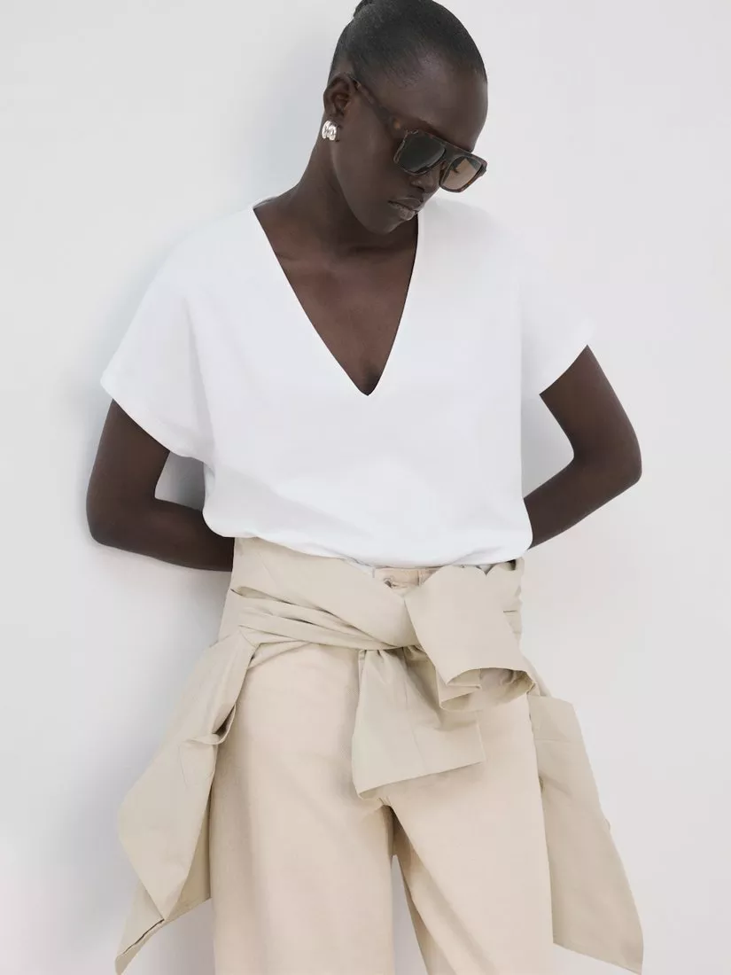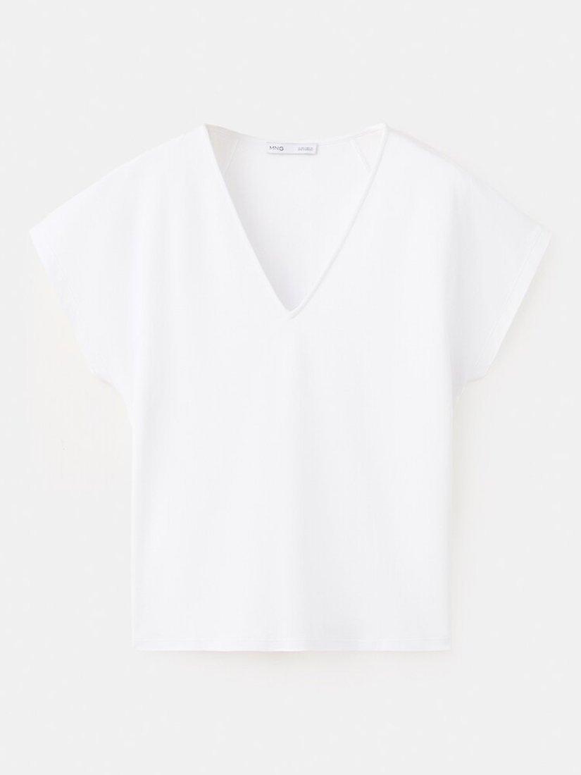 MangoV-Neck Relaxed T-Shirt, White