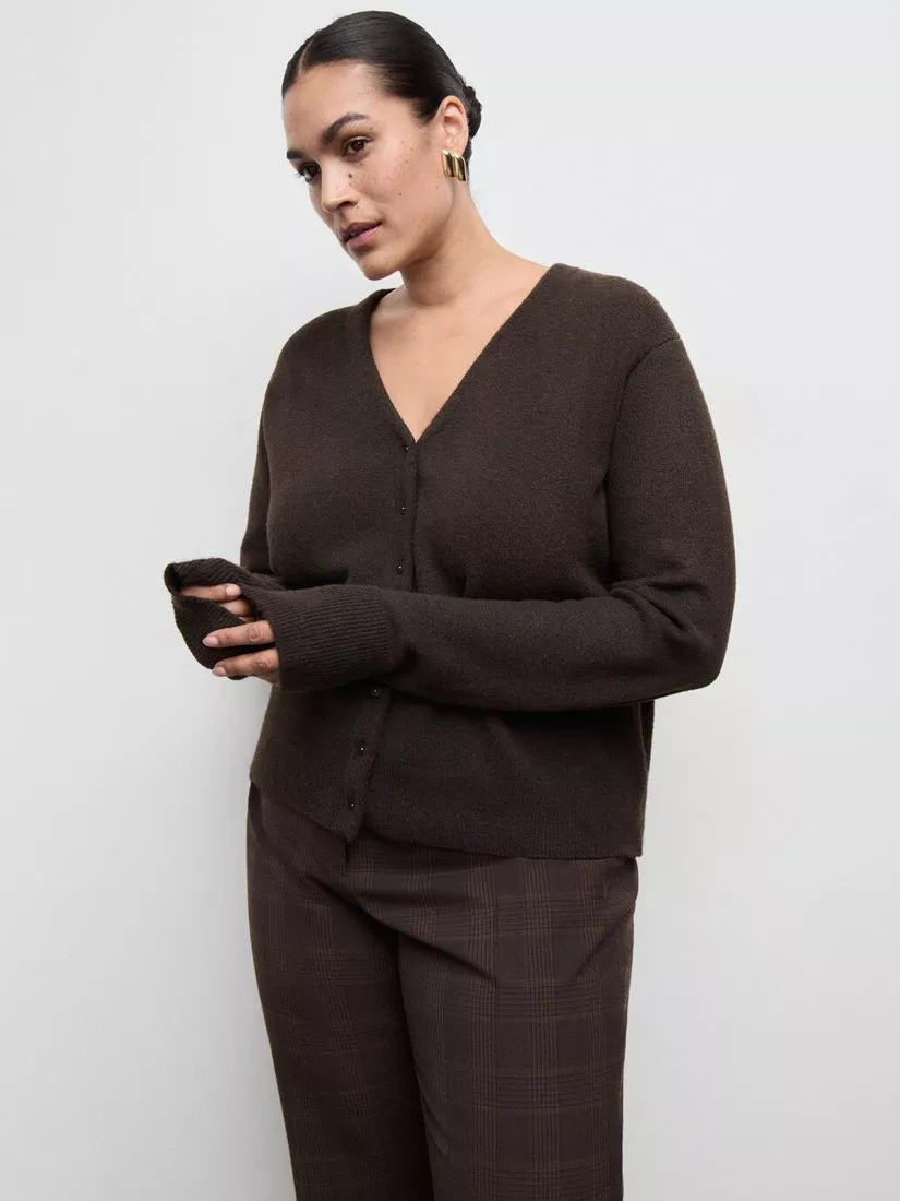 MangoV-Neck Sculpted Cardigan, Chocolate