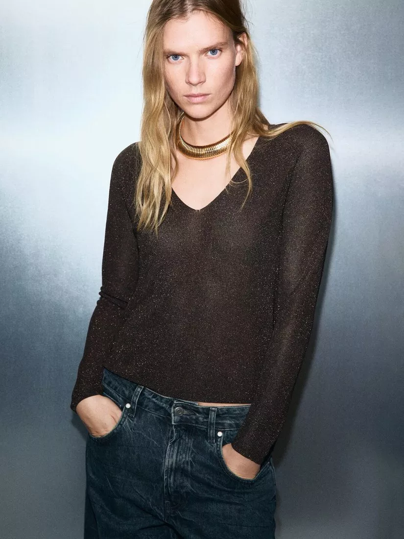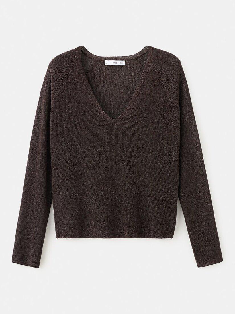 A V-neck jumper by Mango. The soft texture keeps you comfortable all day, while offering comfortable stretch and subtle sheen. Perfect for layering or wearing alone.