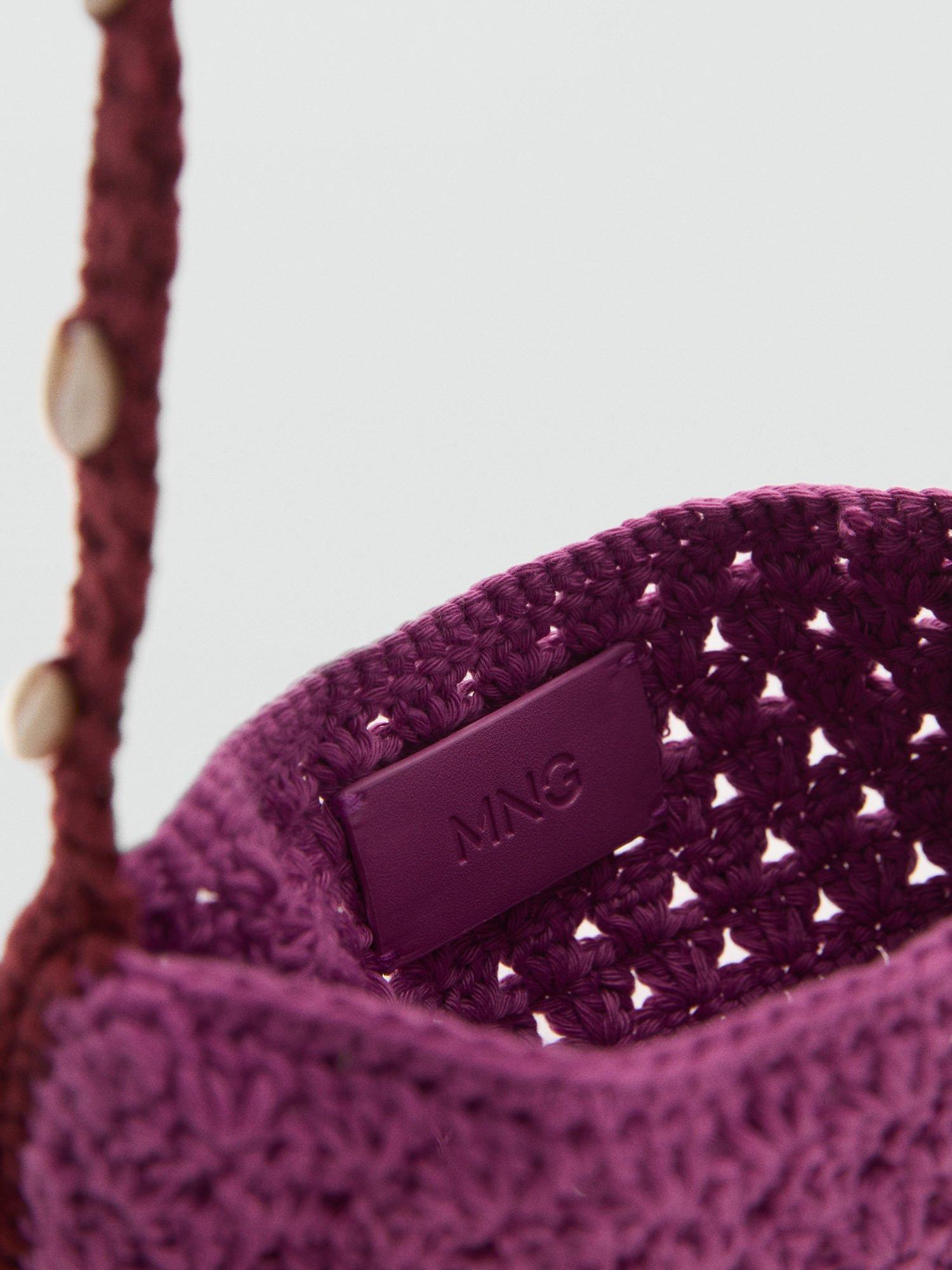Perfect for the summer, this mini size crochet bag is detailed with seashells on the strap.