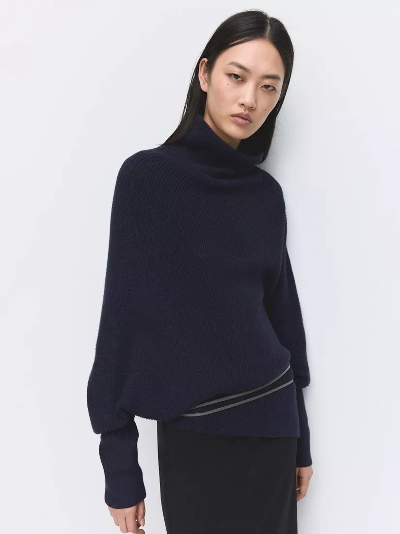 This medium-weight roll neck jumper lends a smart edge to everyday style. Designed for layering with a stylish asymmetric hem, it fits seamlessly into your routine.