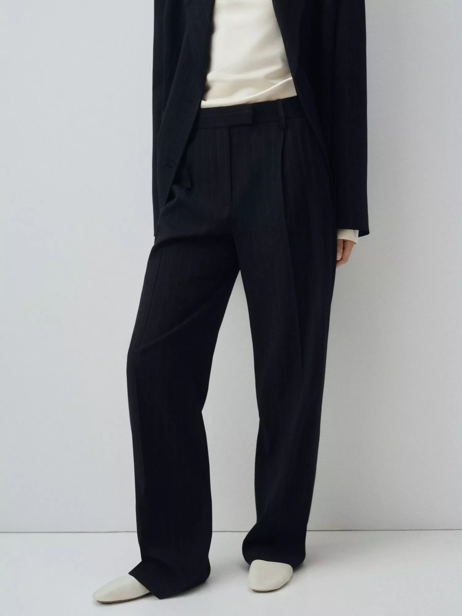 A pair of smart and comfortable, tailored, loose-fit trousers from Mango. This style is cut to sit mid rise with a zip fastening and a longer length.