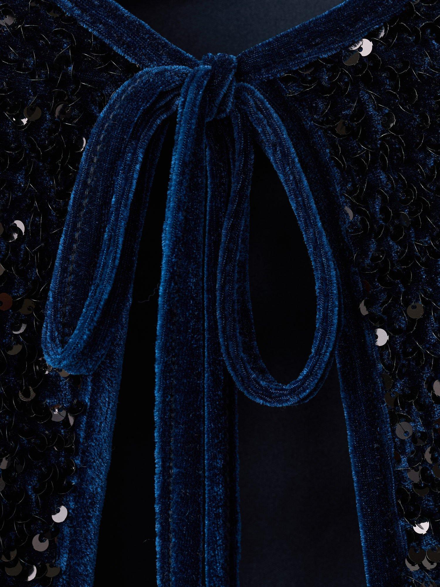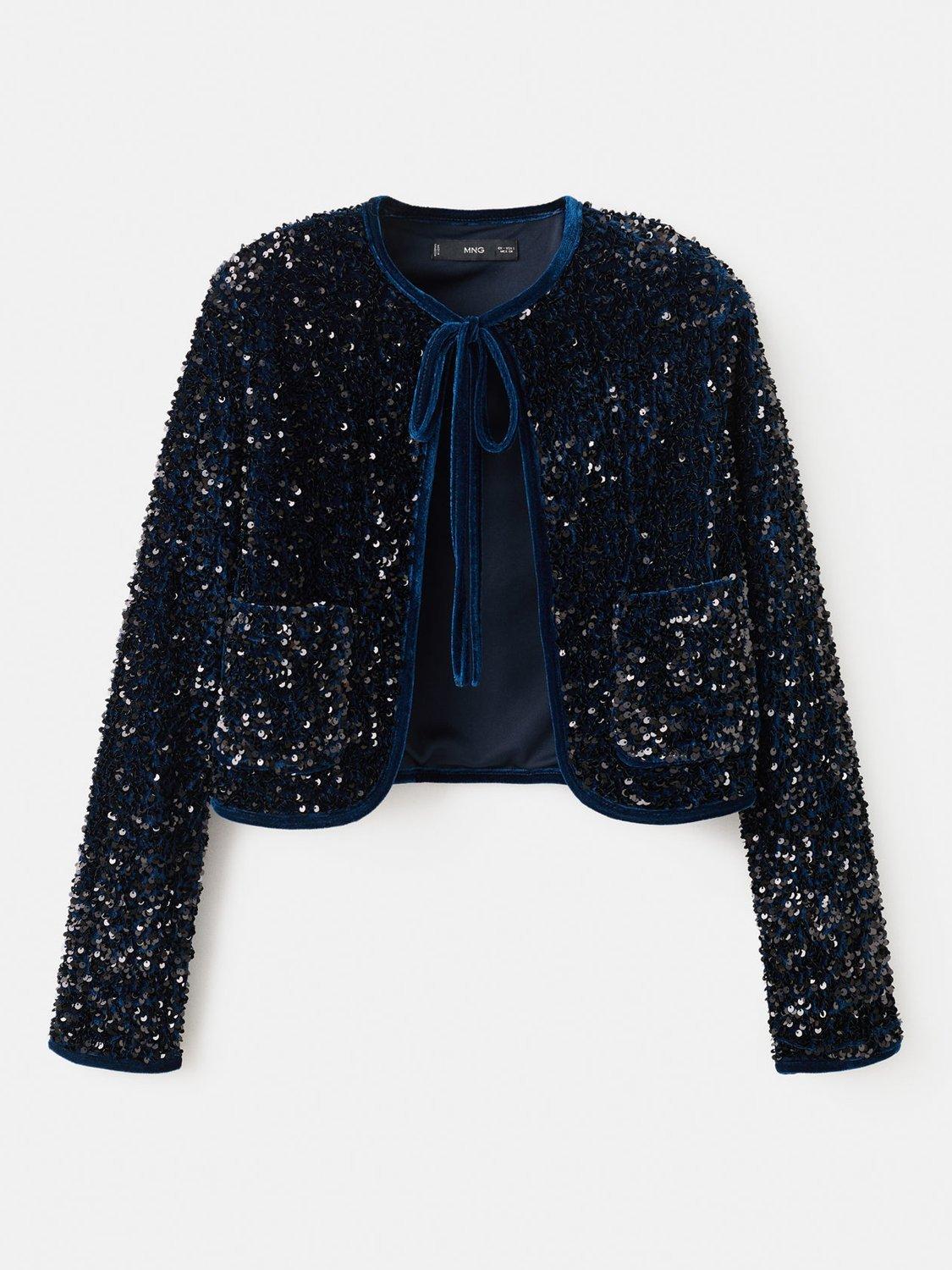 Catching the light with its sequins, this jacket from Mango is made from plush velvet and fastens at the neck with a tie detail.