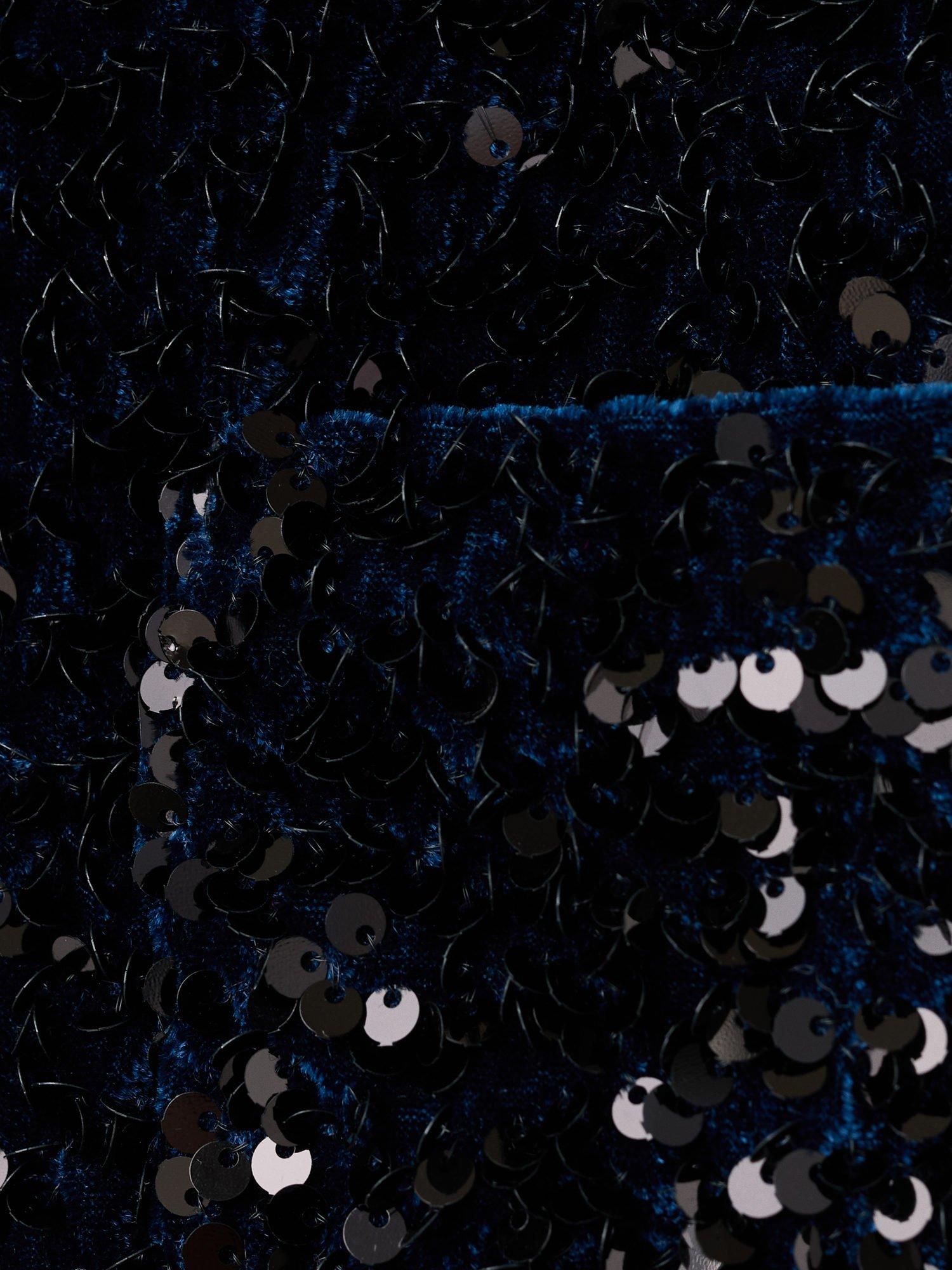 - Main: 100% polyester, Lining: 100% polyester, Belt: 100% polyester, Sequin: 100% polyethylene terephthalate
