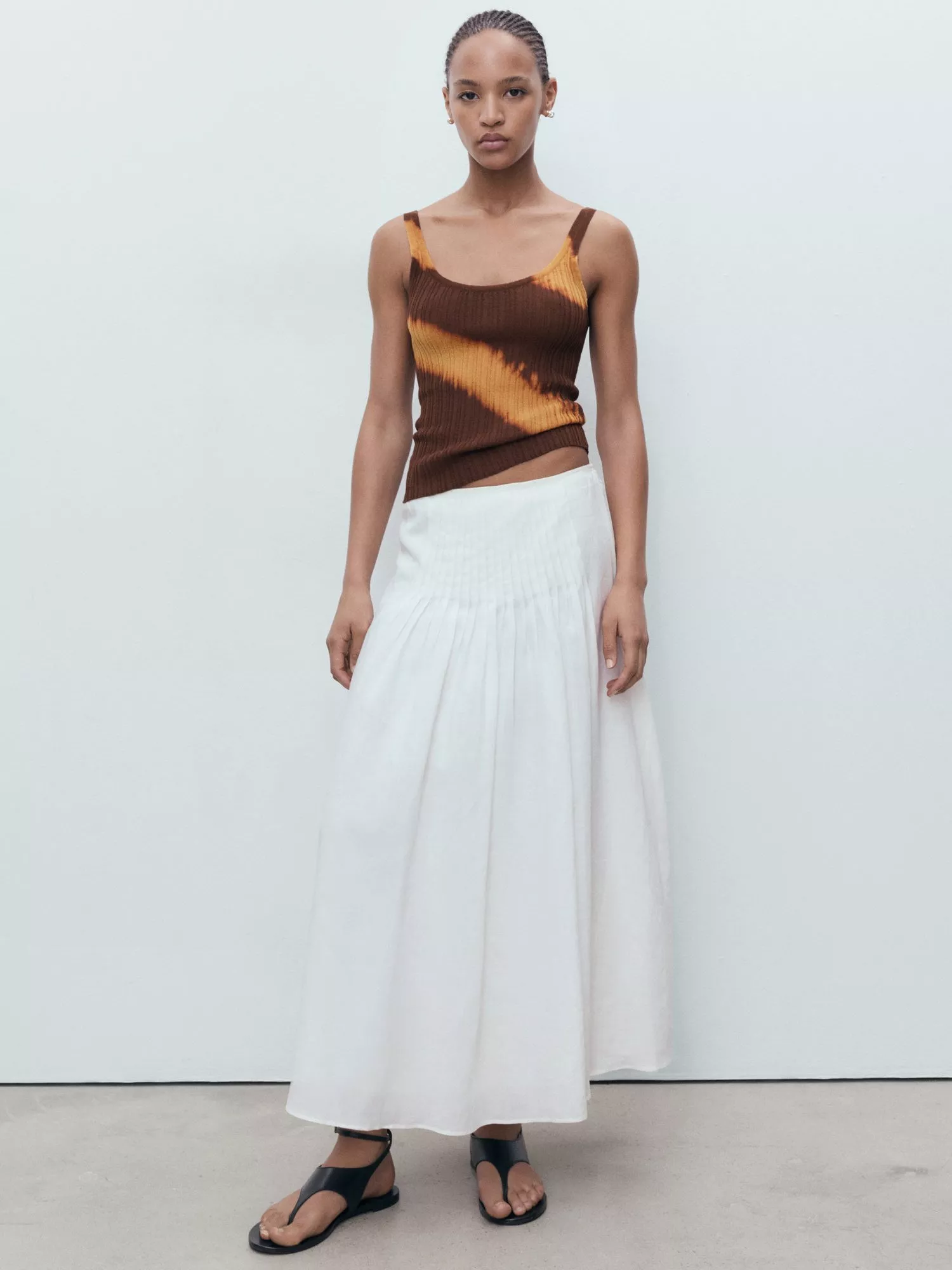 This textured striped scoop neck vest from Mango feels light, making your day that bit more comfortable. Layer or wear solo.
