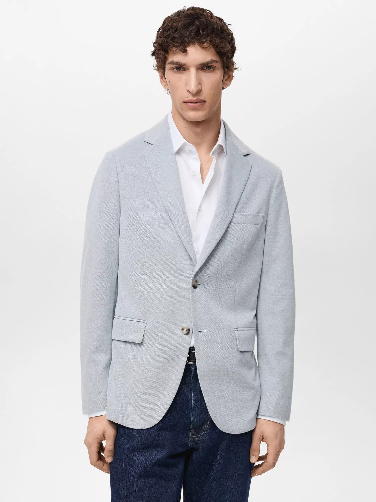 MangoVerner Cotton Blend Blazer, Light Blue