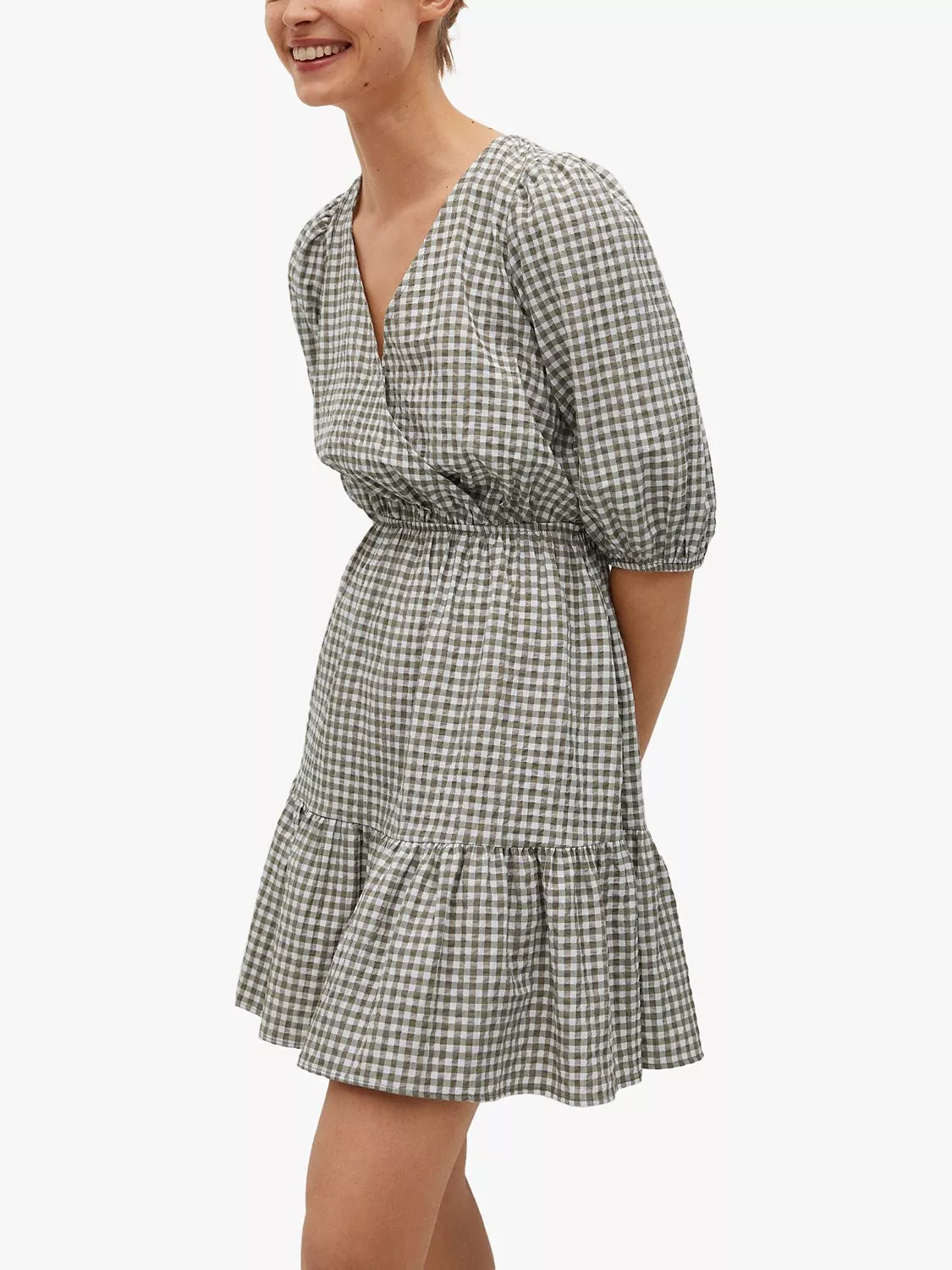 Flaring out at the hem for a feminine silhouette, this mini dress by Mango adds charm to your collection with its classic gingham check pattern.