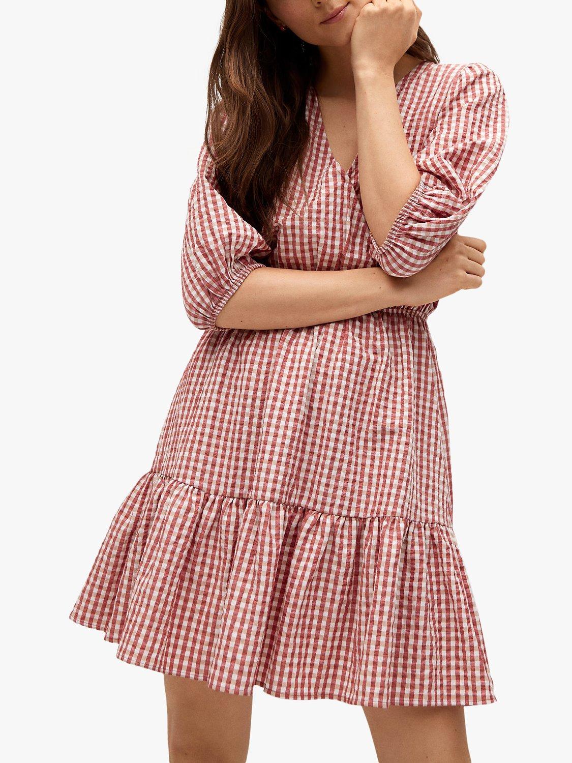 Flaring out at the hem for a feminine silhouette, this mini dress by Mango adds charm to your collection with its classic gingham check pattern.