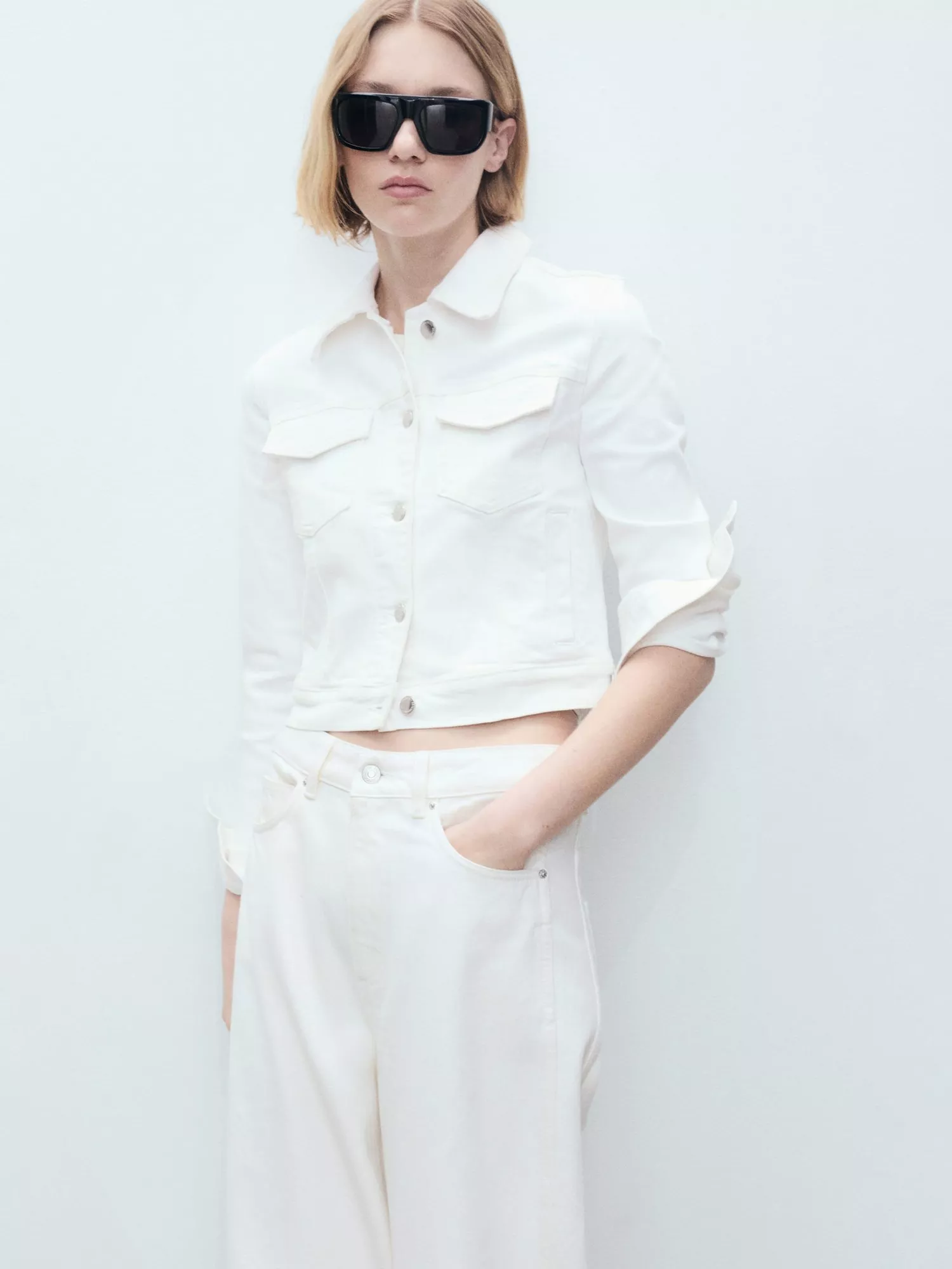 MangoVicky Cropped Denim Jacket, White