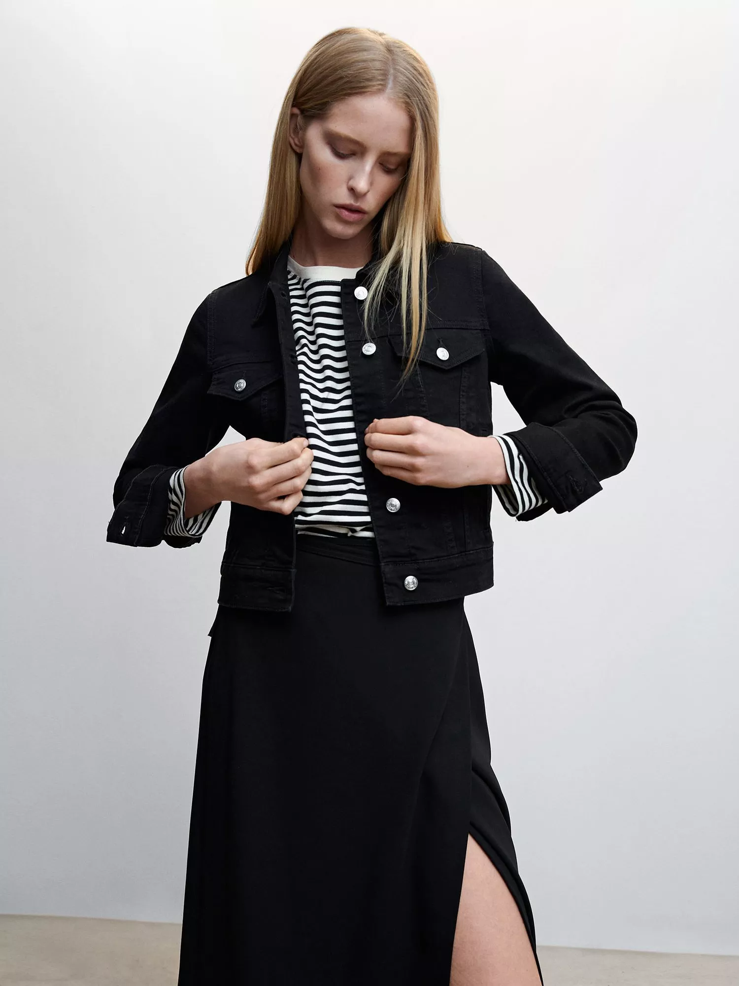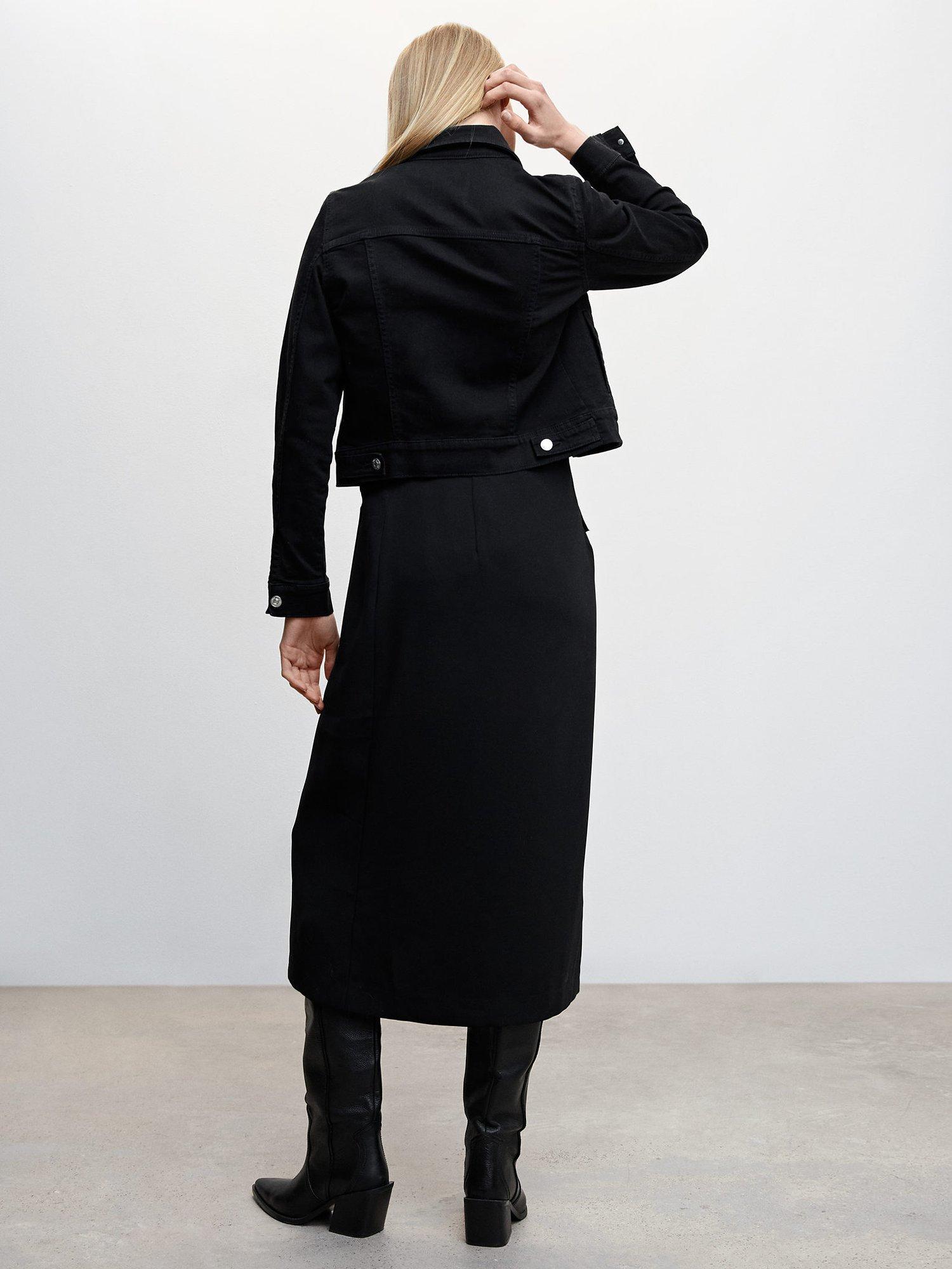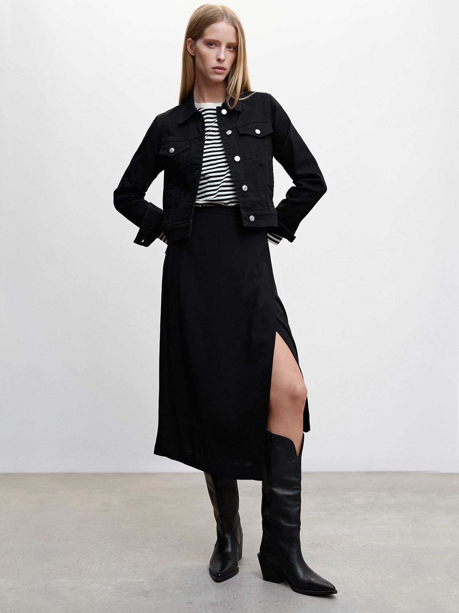 In a timeless style that layers over everything, this denim jacket from Mango falls just to the knee in a mid-length cut.
