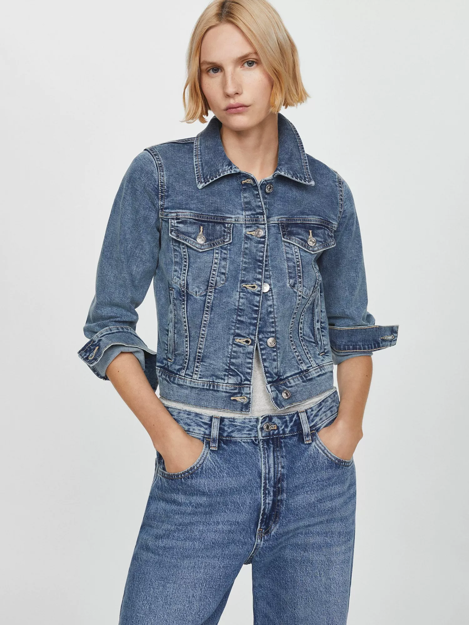 Easily layering over weekend attire, this denim jacket by Mango sits at the hips for practical coverage.