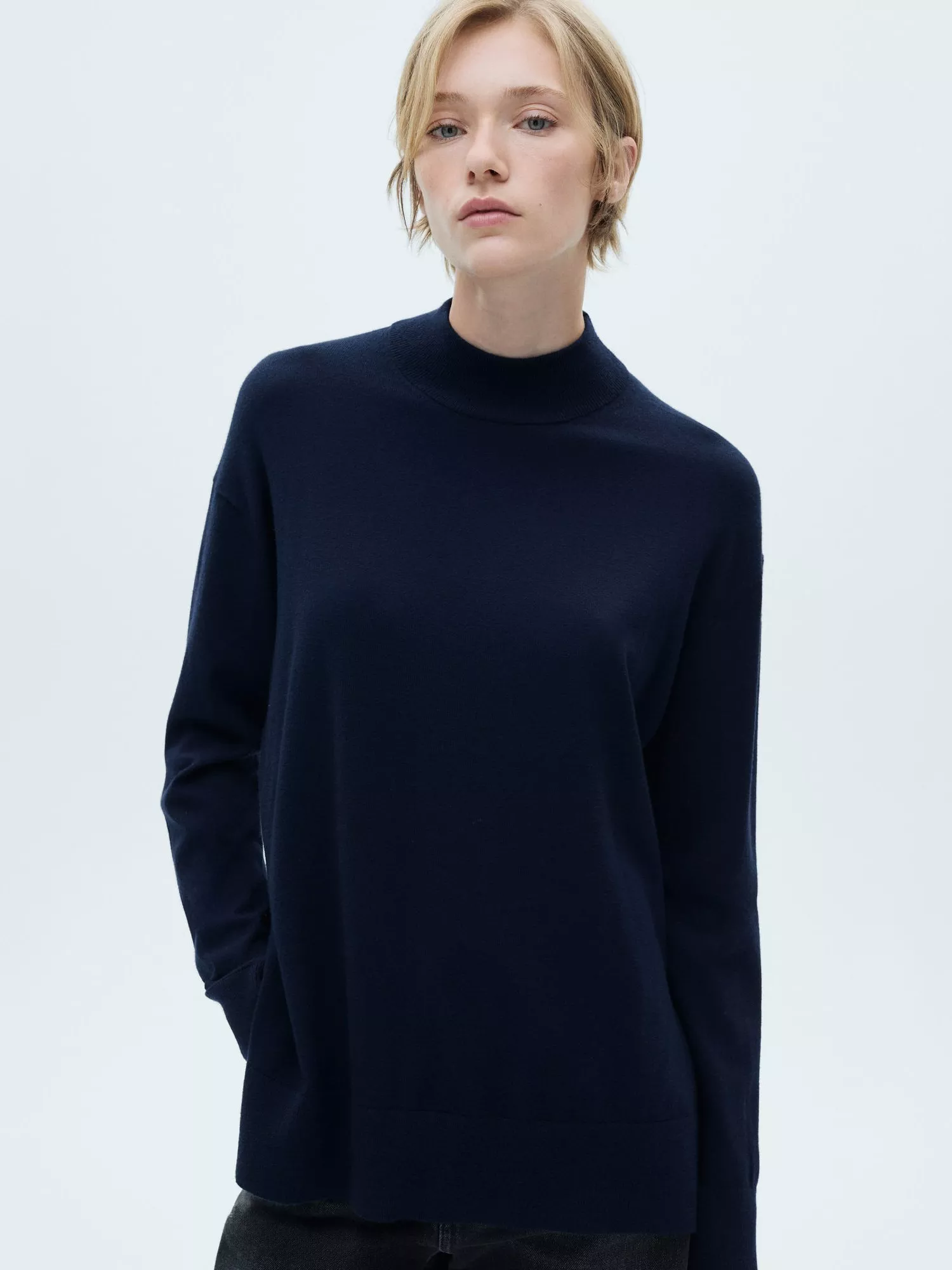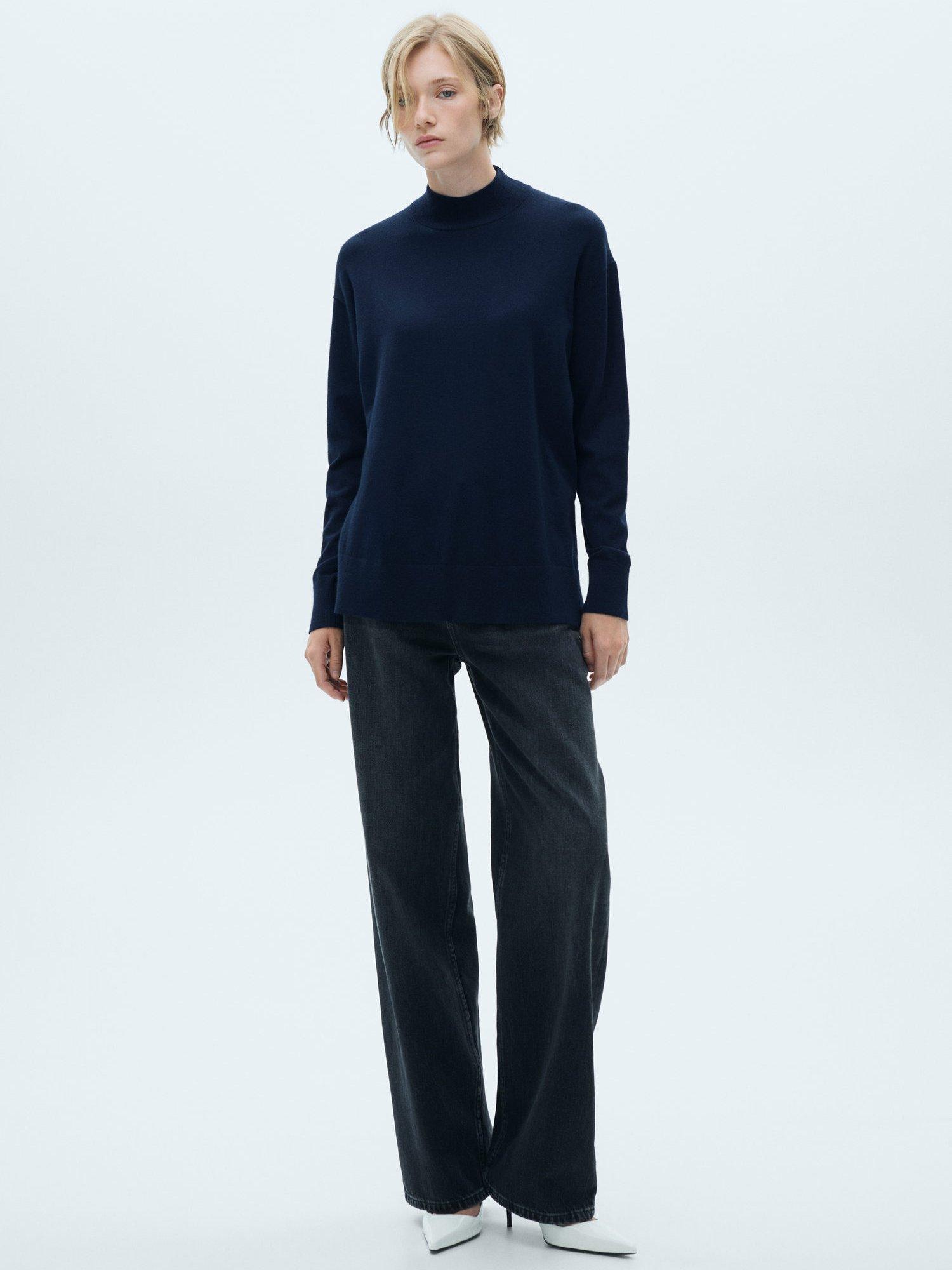 Sleek and elegant with its high neckline, this lightweight oversized jumper by Mango is made from a lightweight blended fabric.