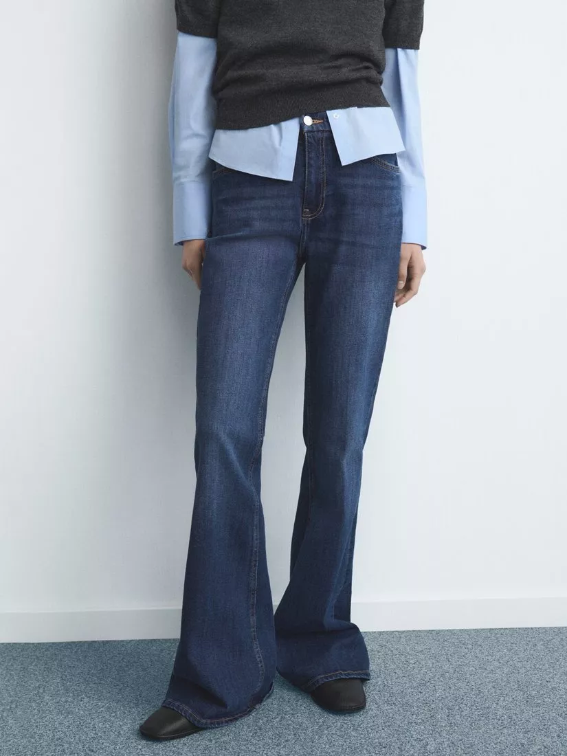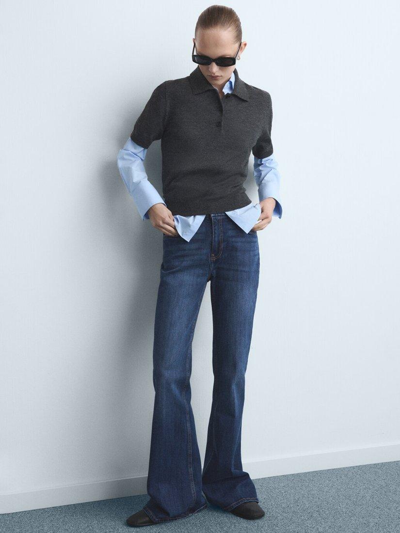 MangoVioleta High Rise Flared Jeans, Open Blue