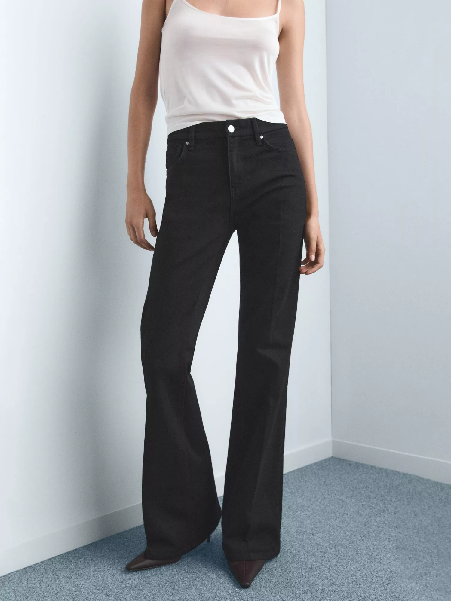 Flared jeans crafted with a close fit up top and exaggerated volume through the leg. Sculpted from denim featuring a mid rise and a classic zip fly.