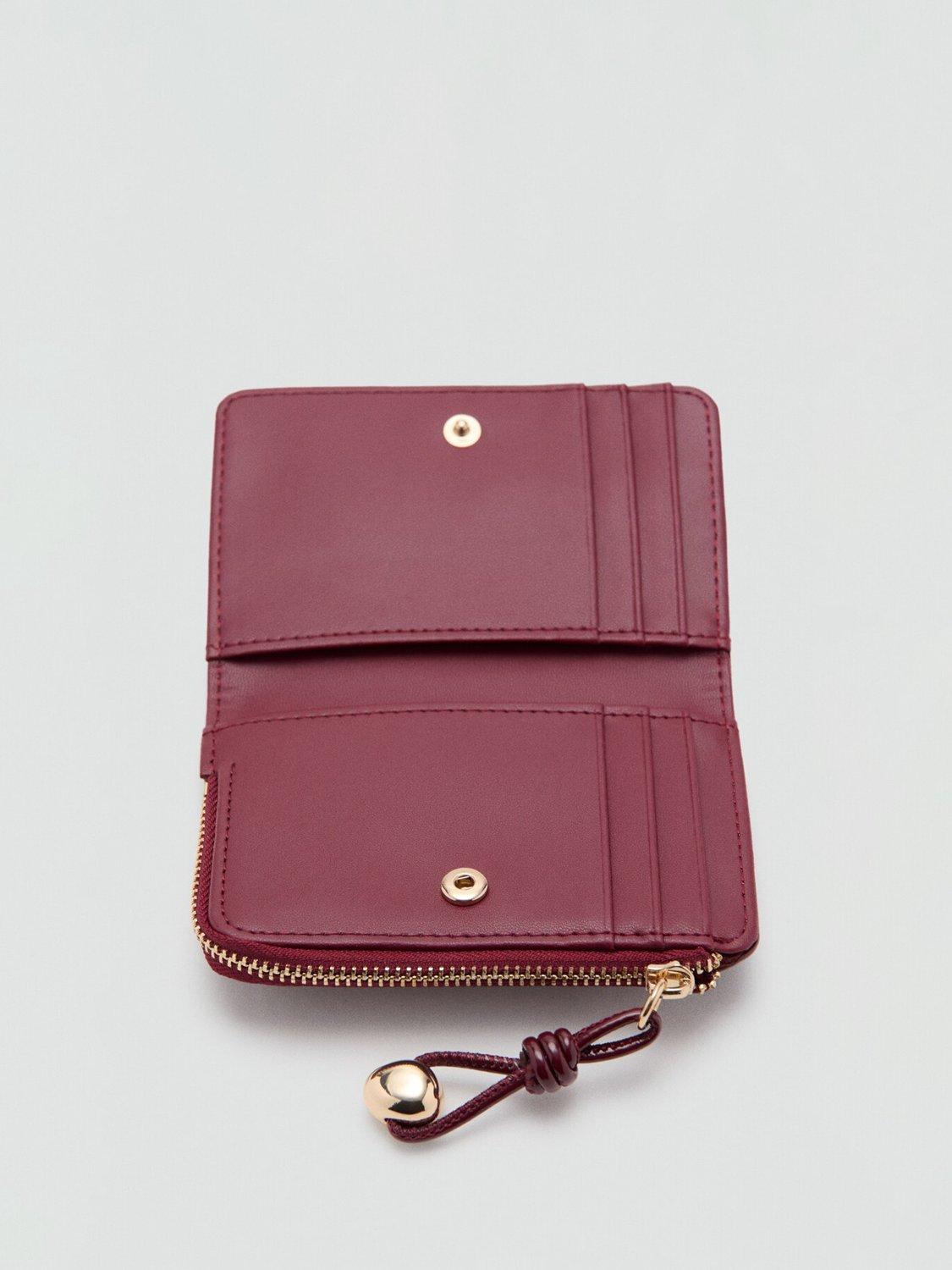 With a smooth finish and secure zip fastening, this Mango purse keeps essentials organised for easy access. Its compact design slips effortlessly into your bag.