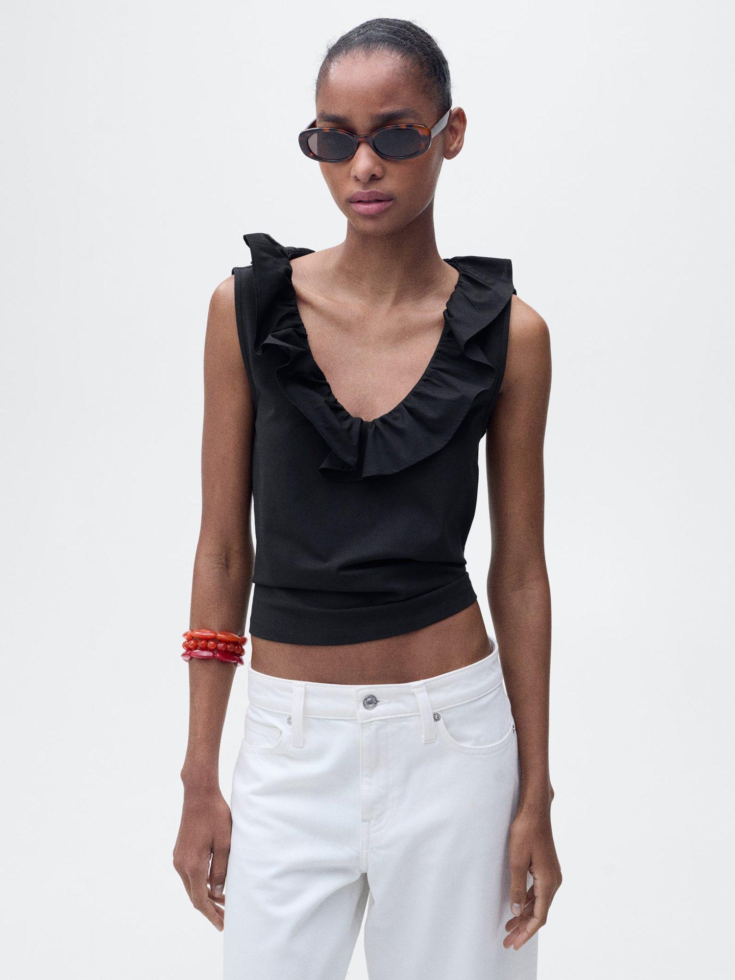 Simple and versatile in nature, this vest by Mango will give your wardrobe the refresh it needs. Framed with a scooped neck and a sleeveless design, it is made from a comfortable cotton-rich fabric and will slot seamlessly into your everyday staples.