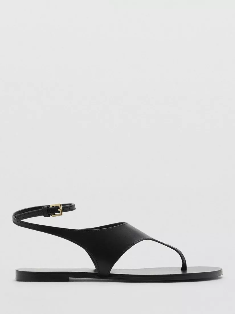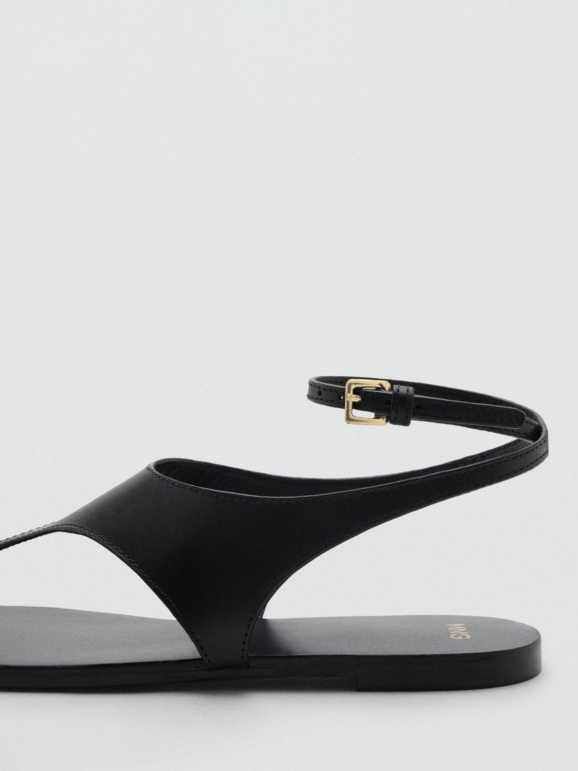 A pair of leather T-bar sandals from Mango. Designed for day-long comfort, their clever buckle fastening and flat heel ensure ease with every stride, making them the practical finishing touch to all your casual summer adventures.