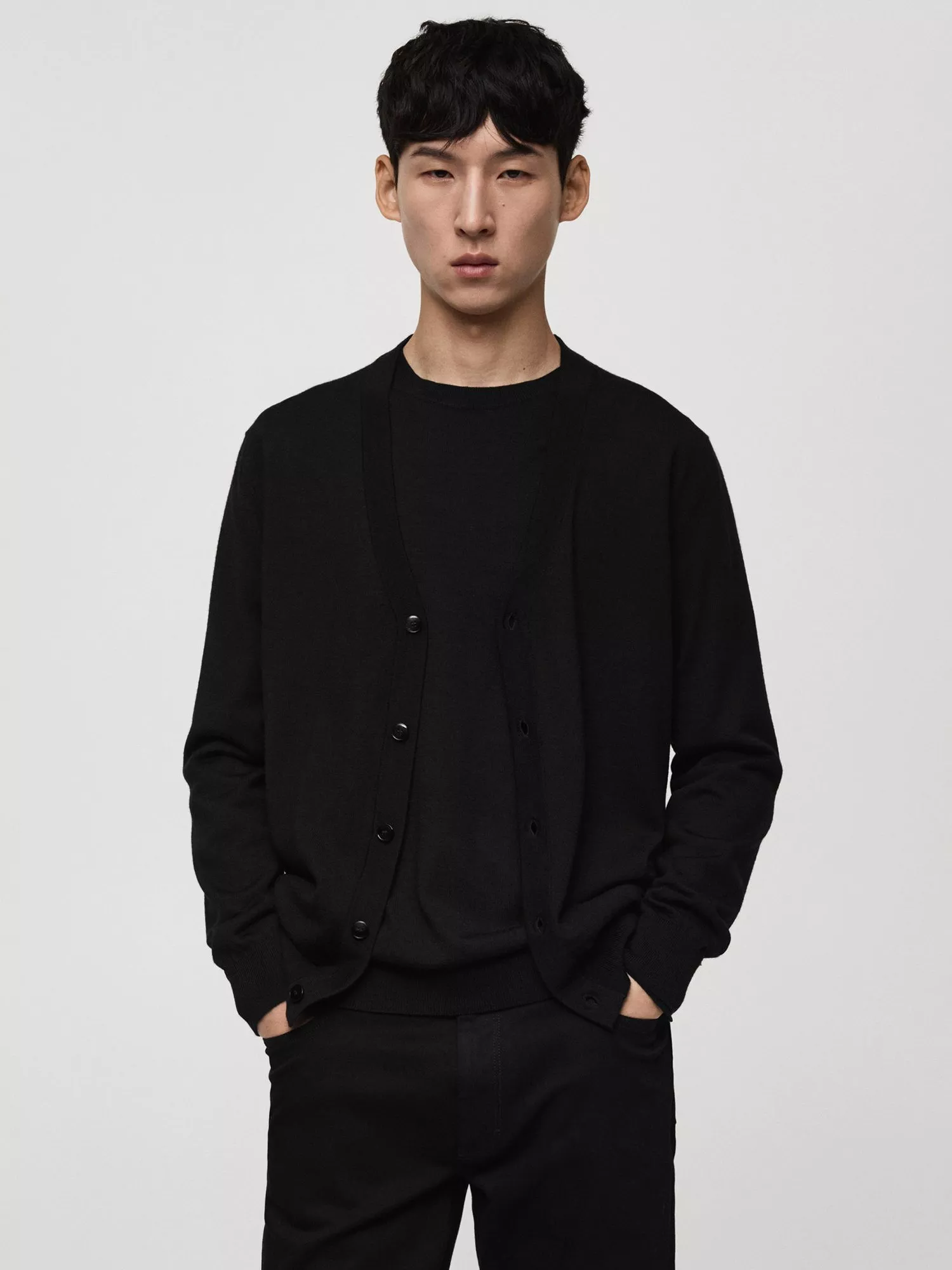 MangoWilly Merino Wool V-Neck Cardigan, Black, XXL