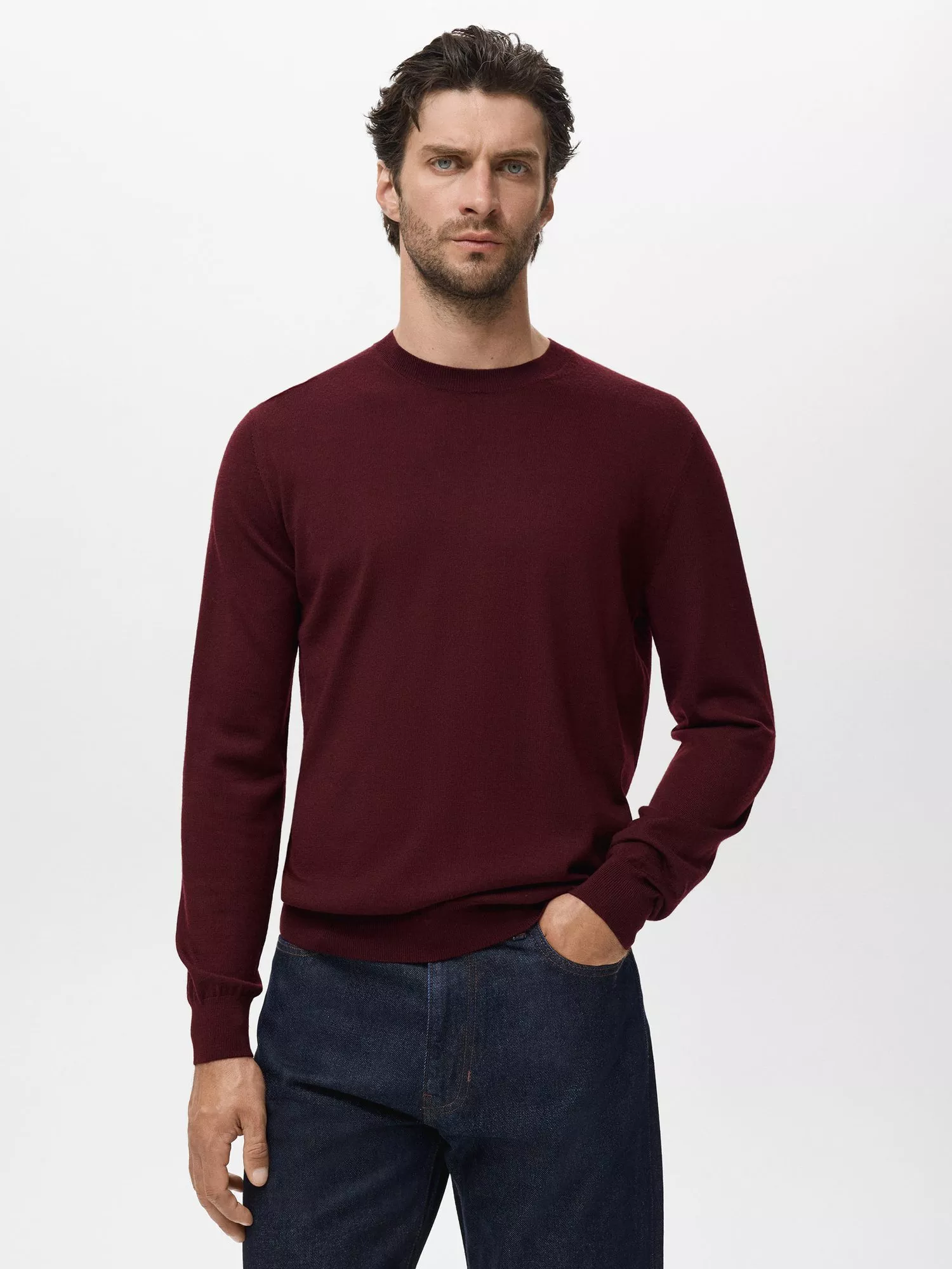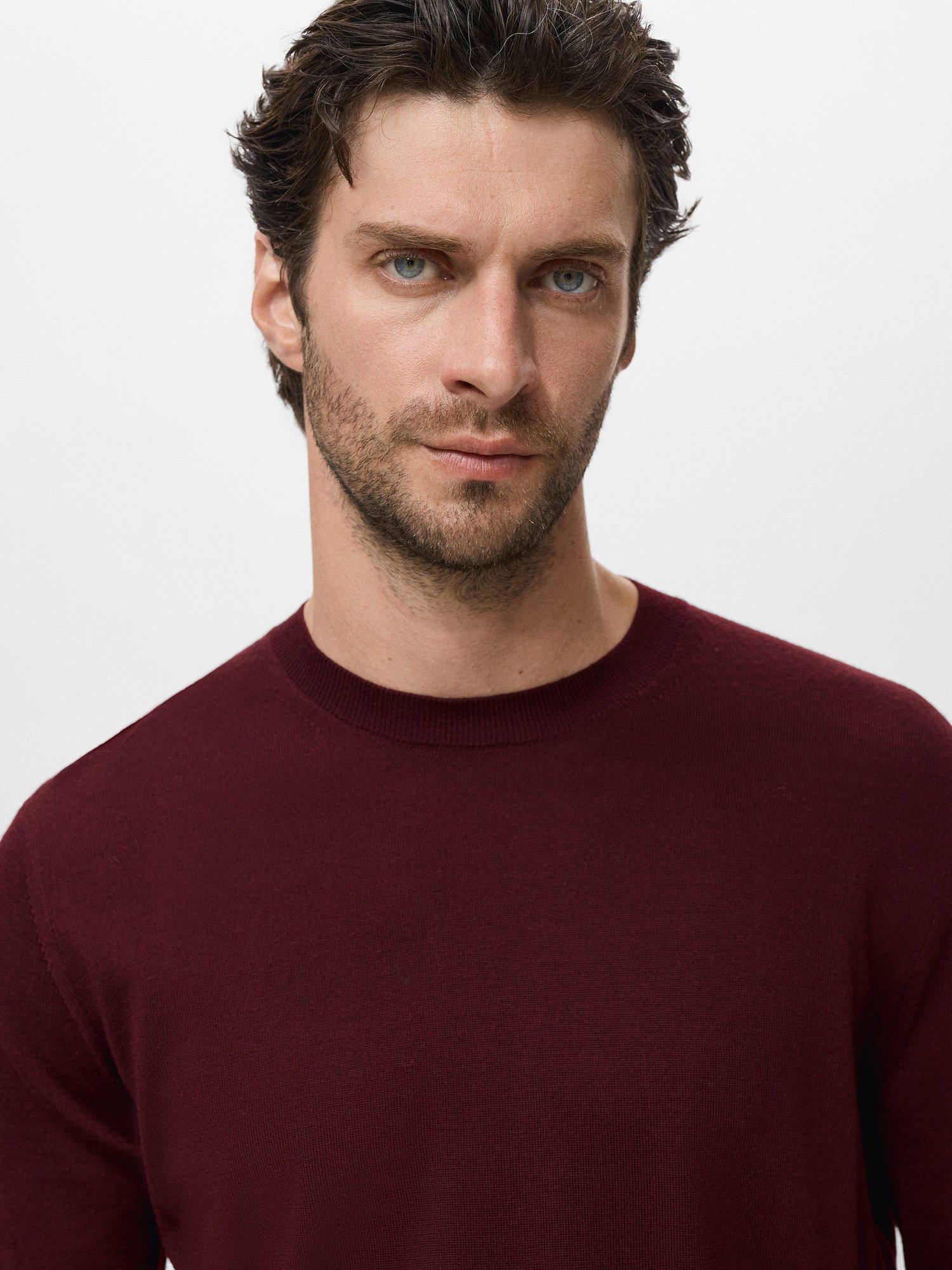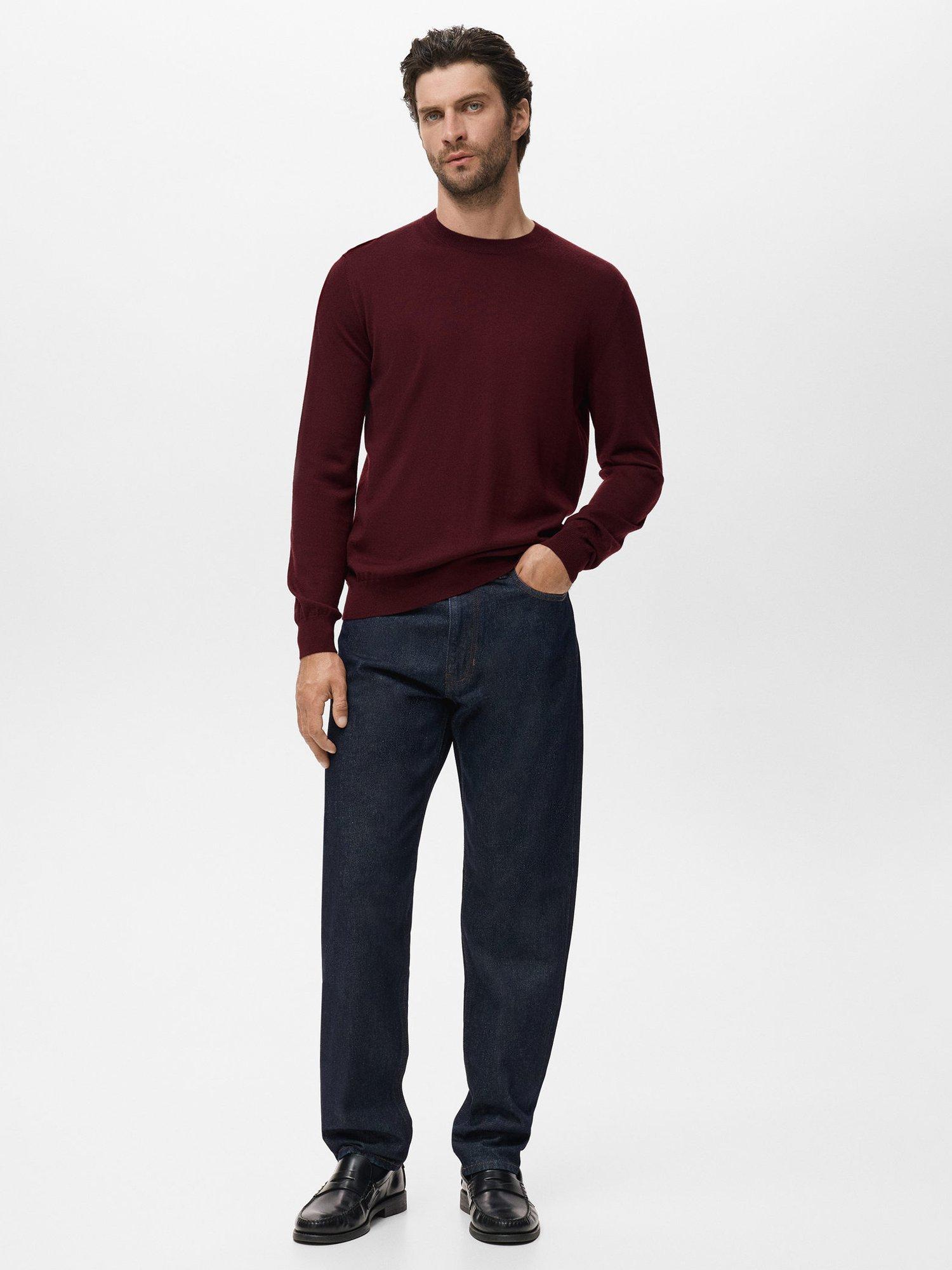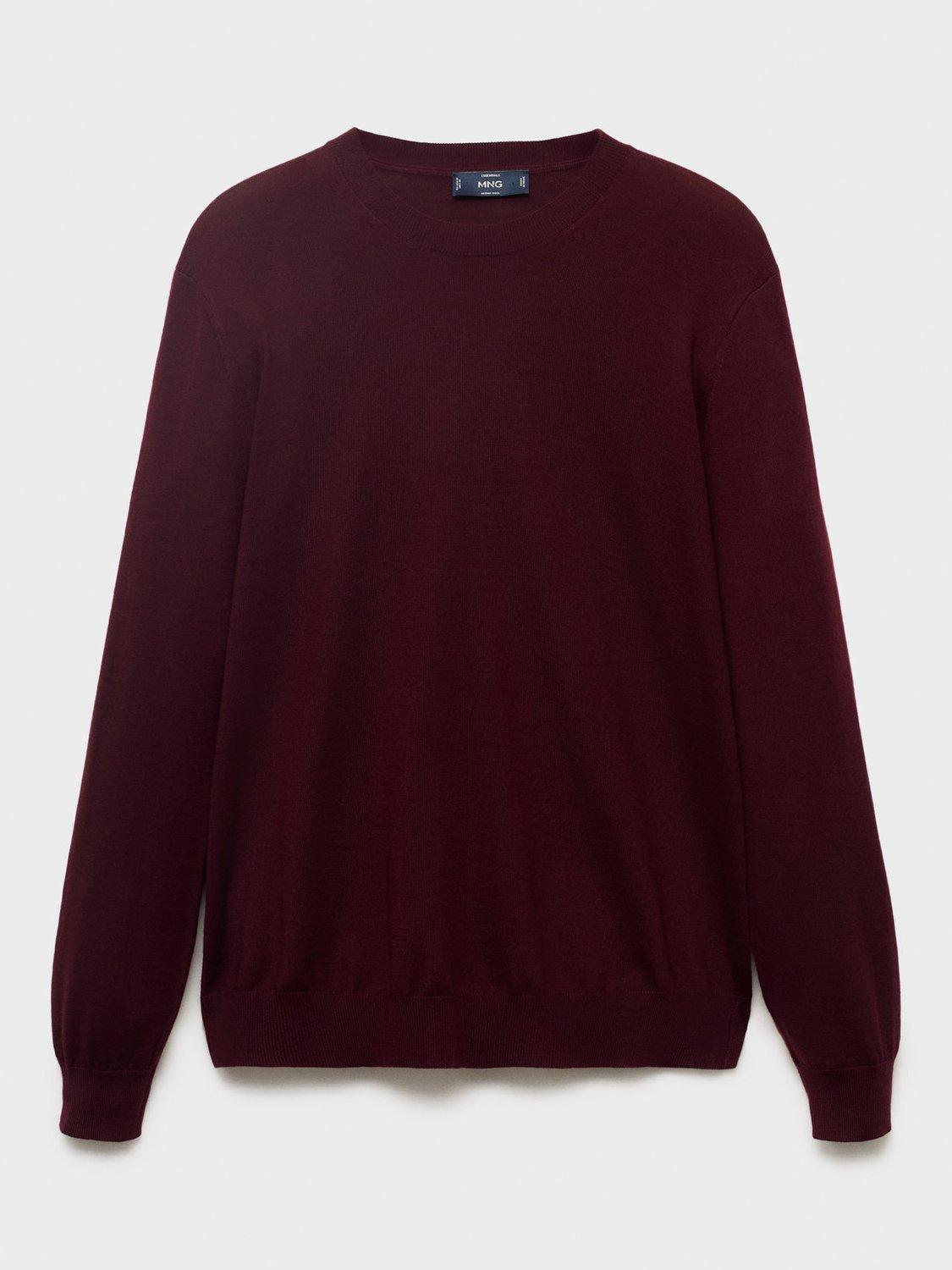MangoWilly Wool Crew Neck Jumper, Dark Red, L