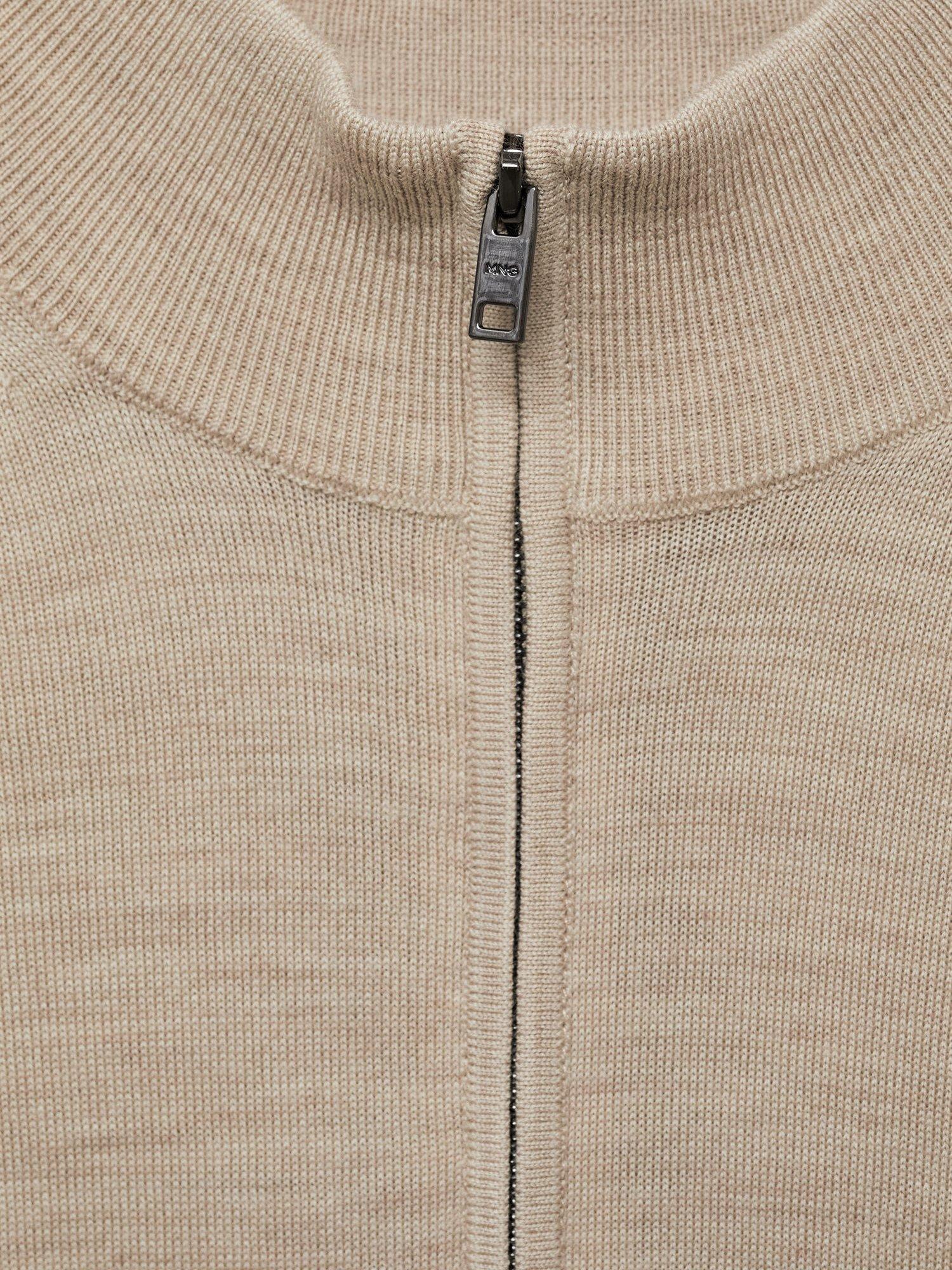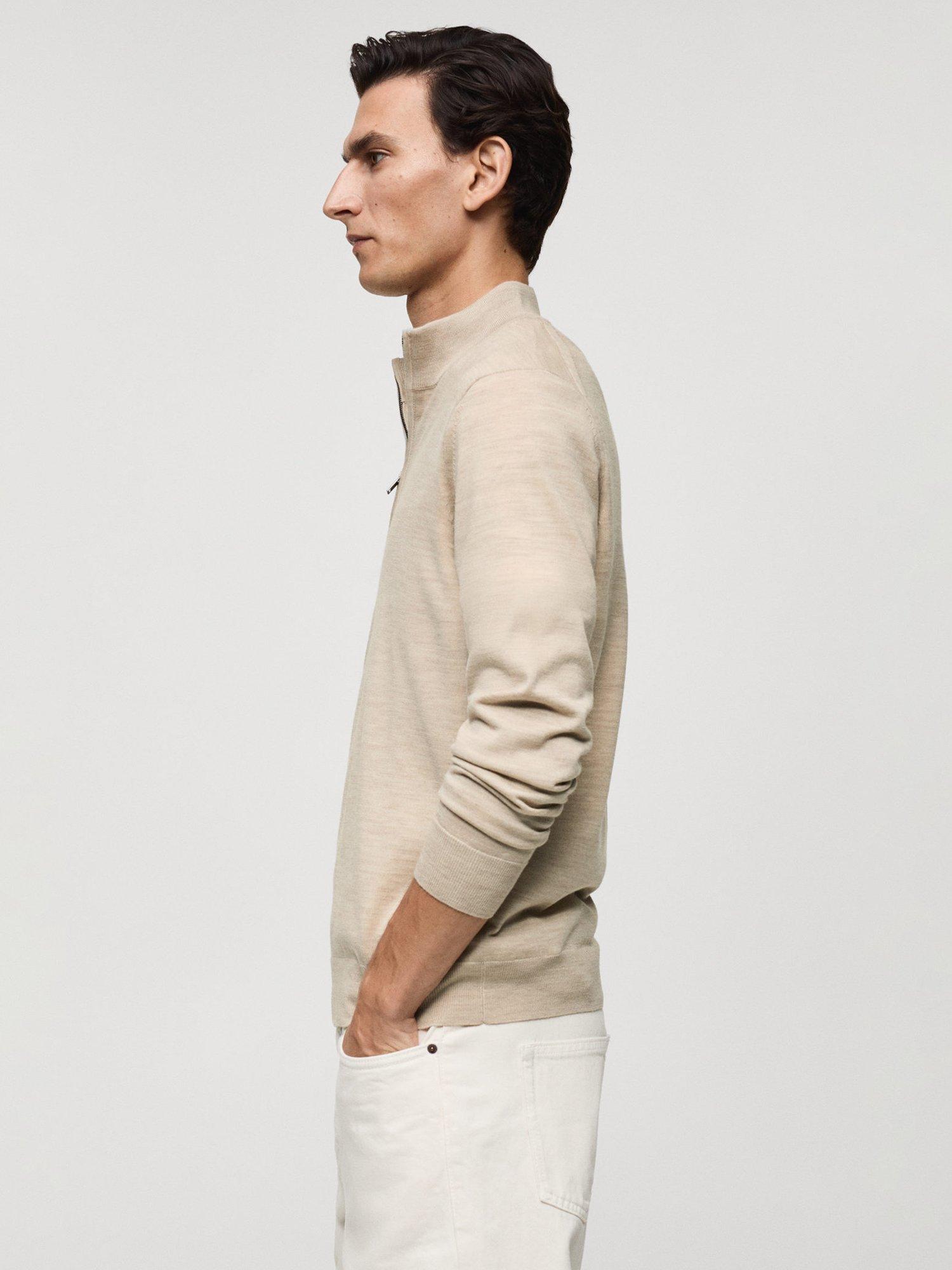 MangoWilly Wool Half Zip Jumper, Light Beige