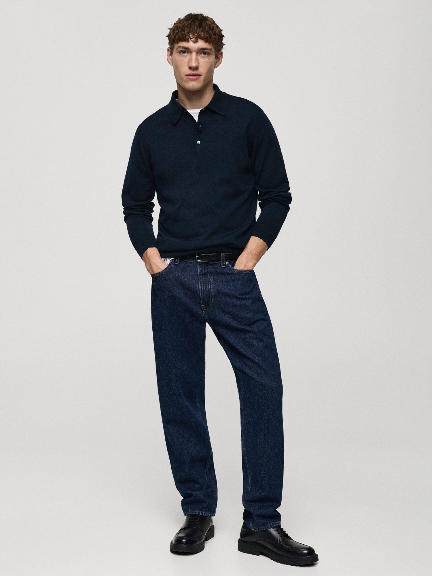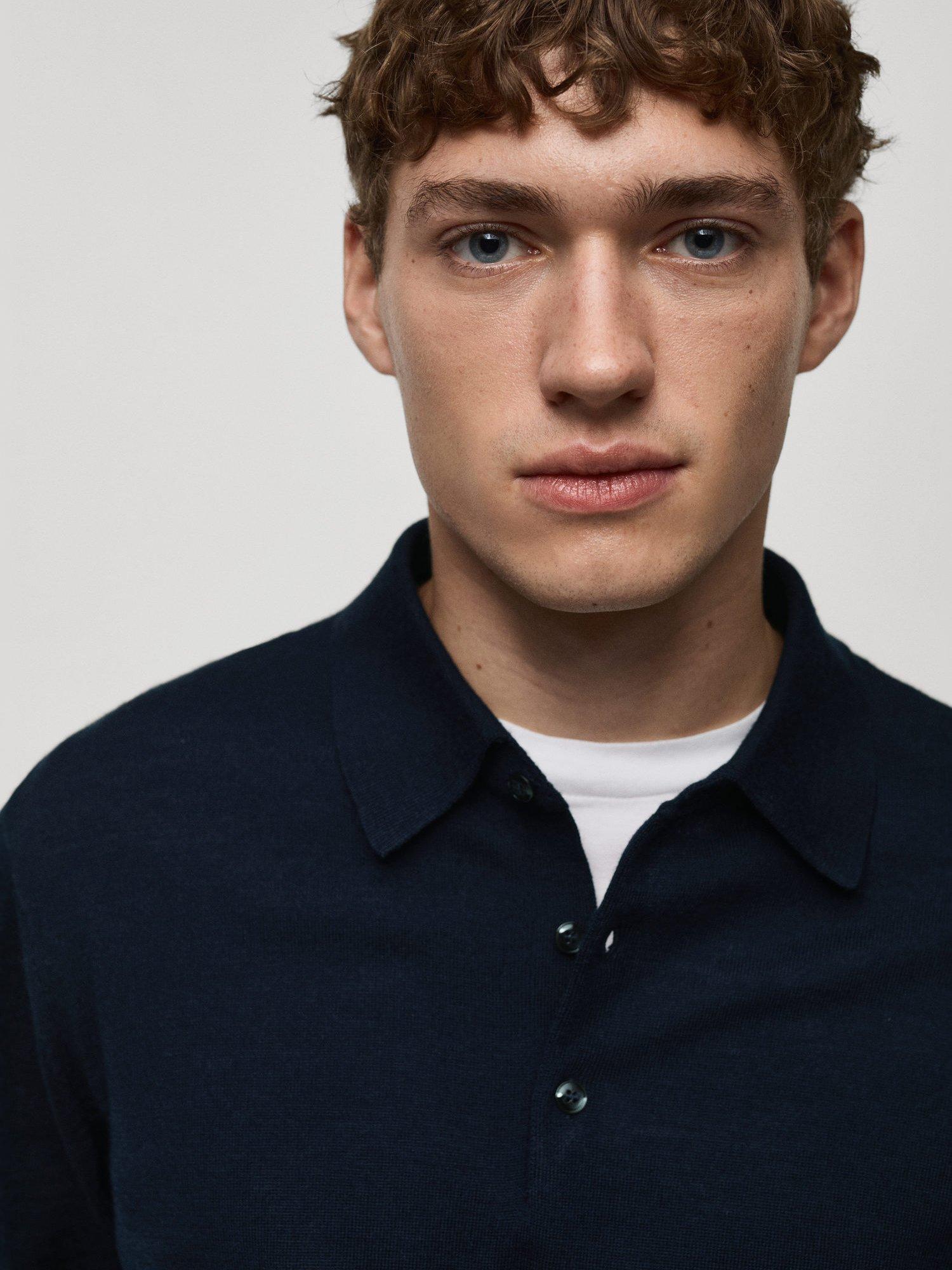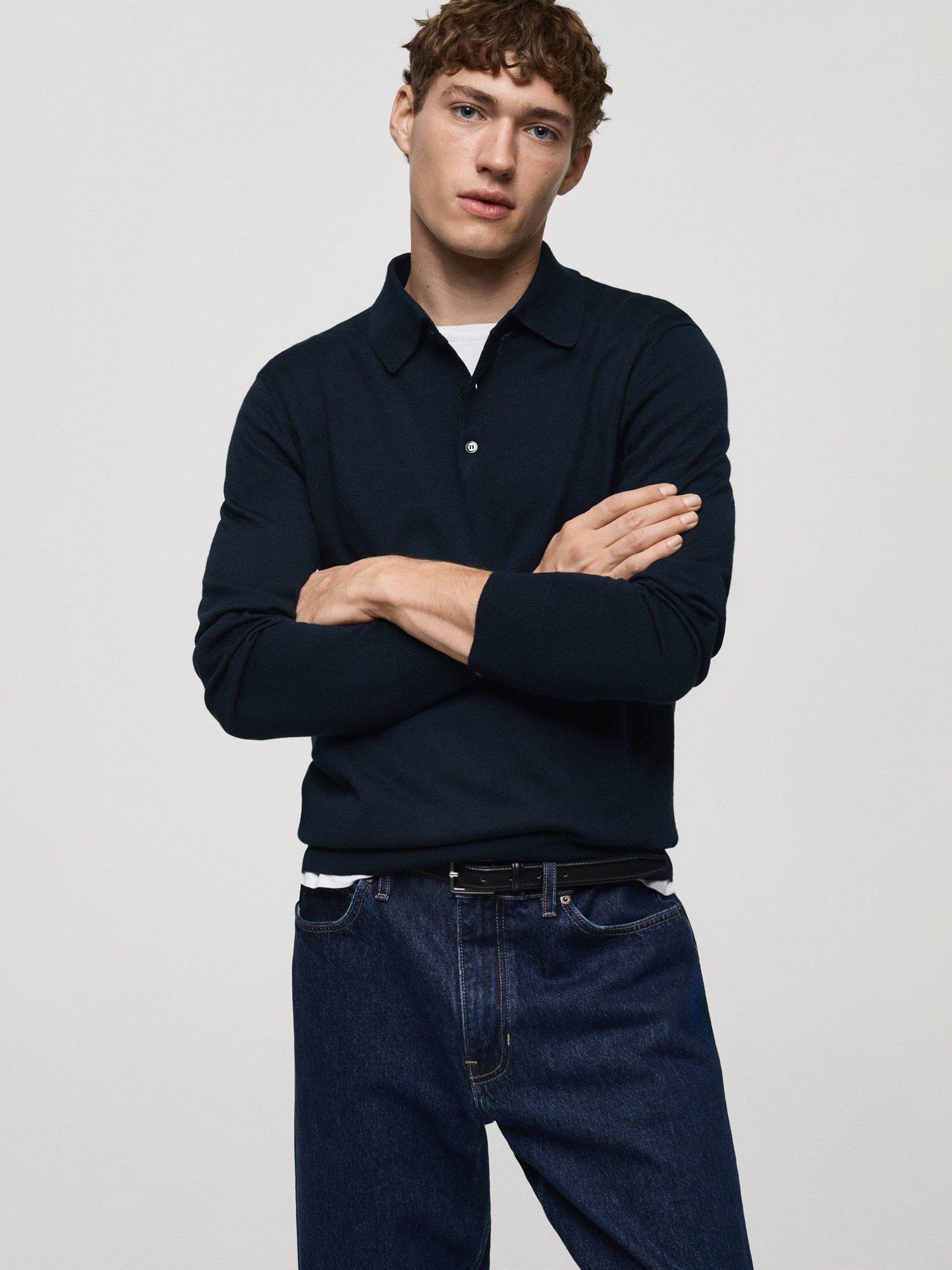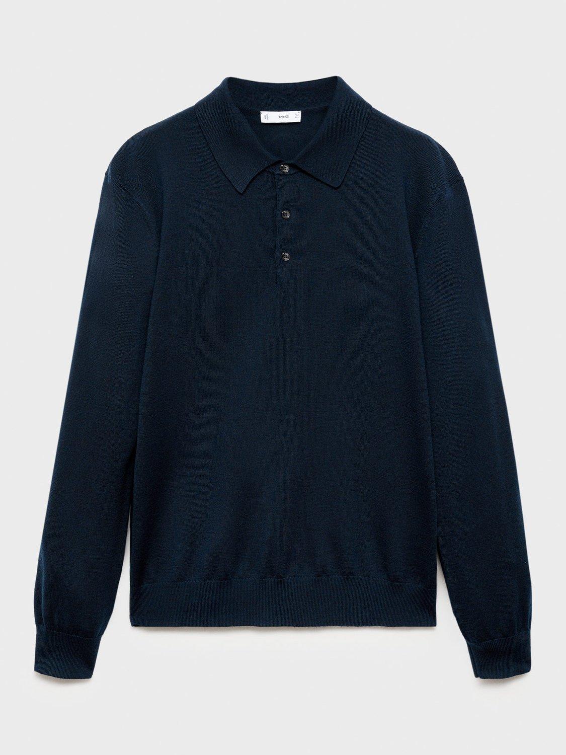 MangoWilly Wool Regular Fit Polo Neck Jumper, Navy