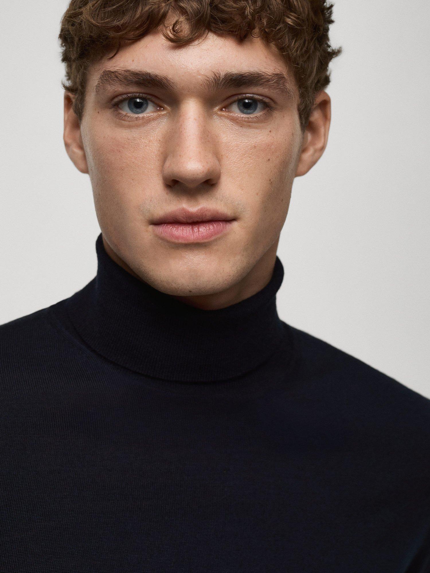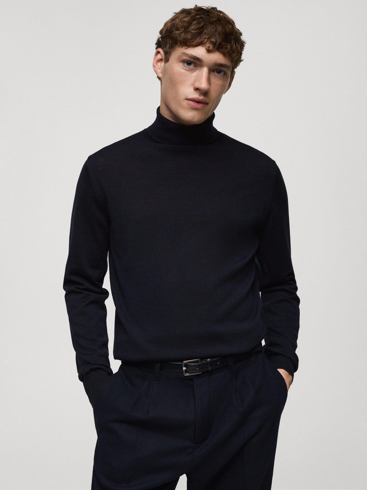 MangoWilly Wool Regular Fit Turtleneck Jumper, Navy