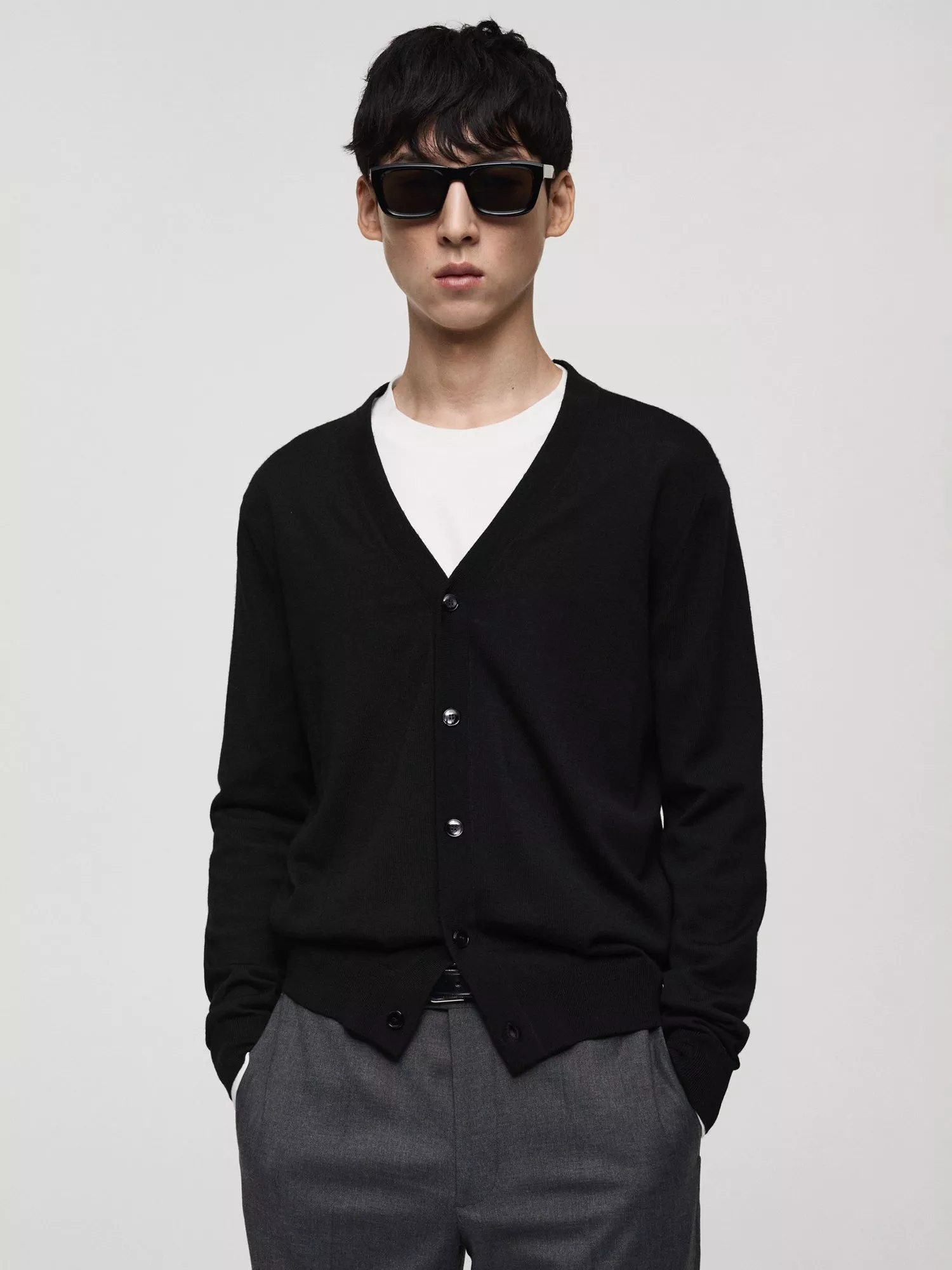 MangoWilly Wool Regular Fit V-Neck Cardigan