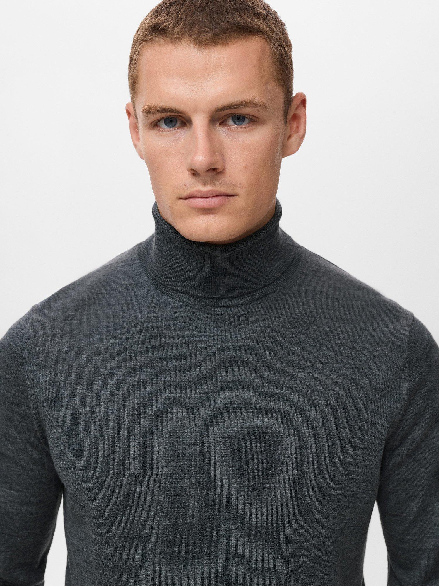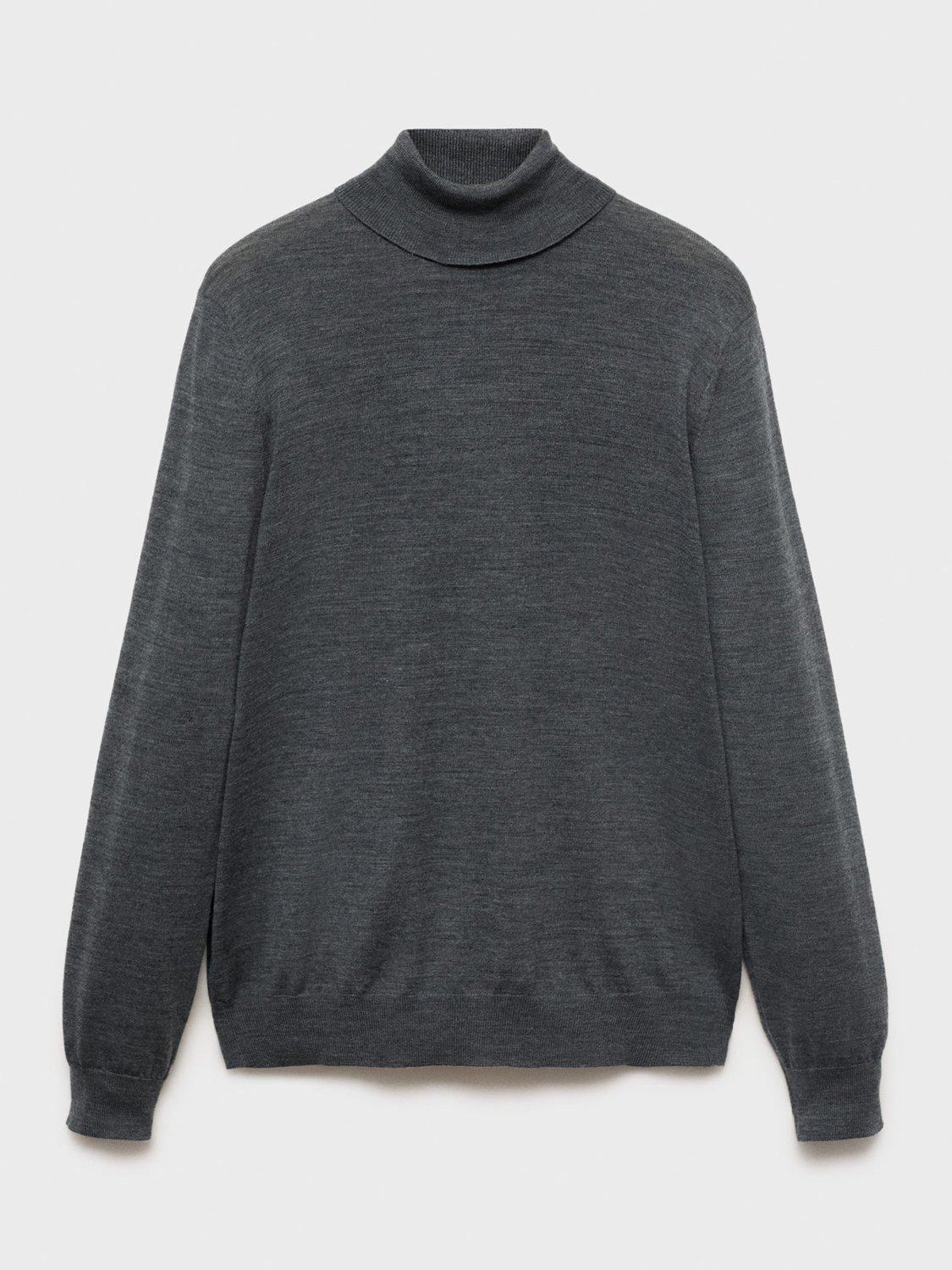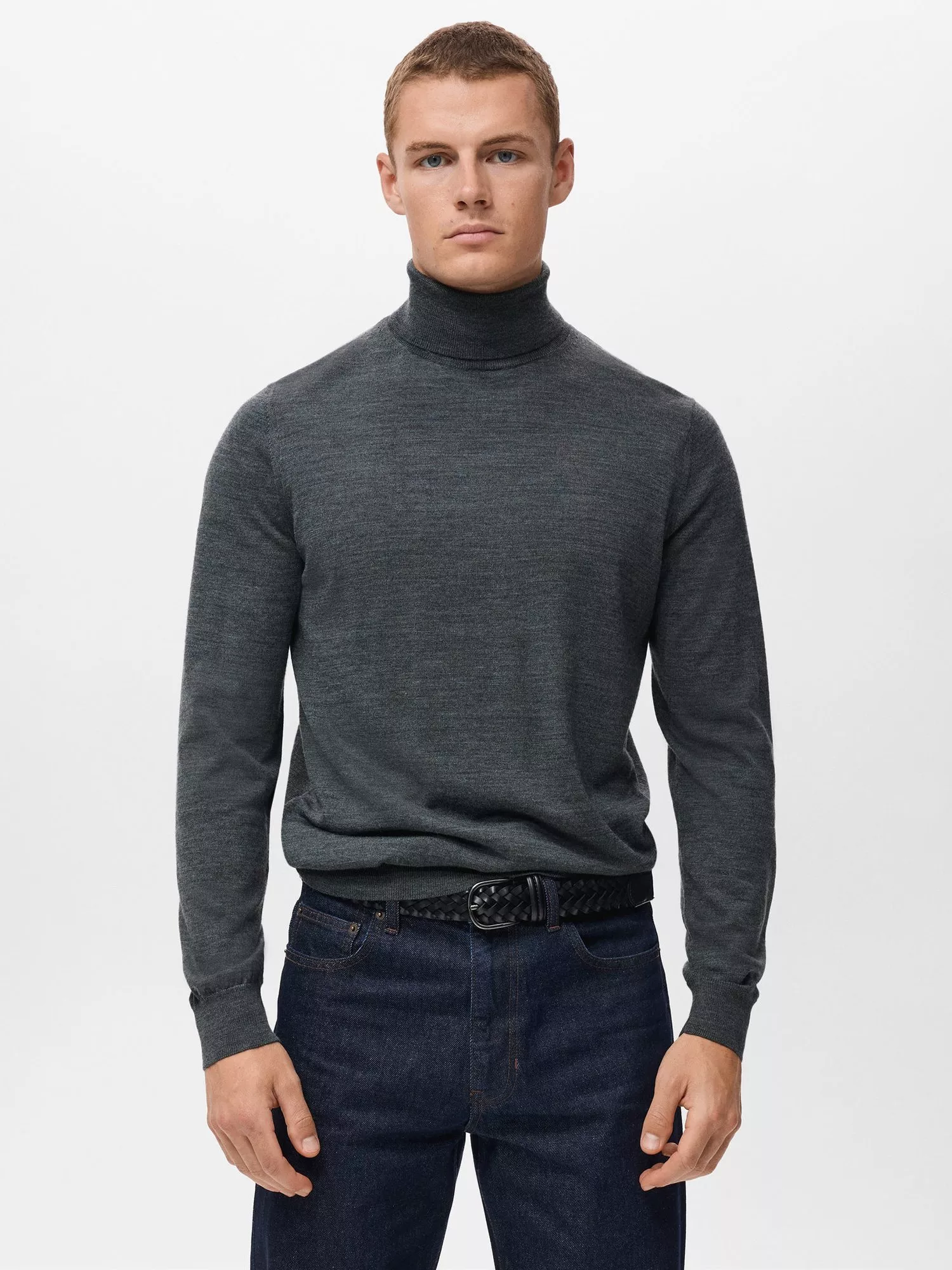 MangoWilly Wool Turtle Neck Jumper, Medium Grey