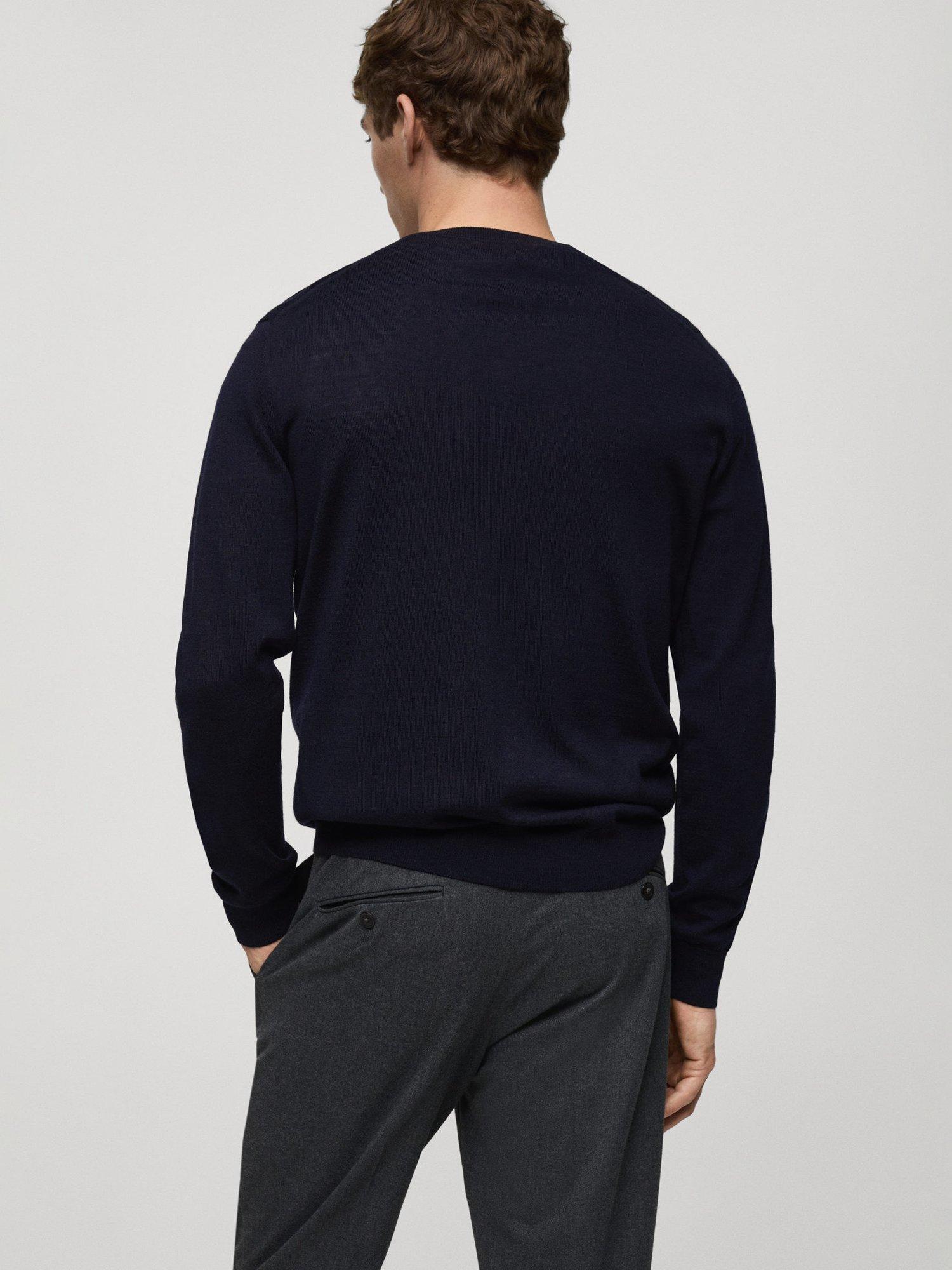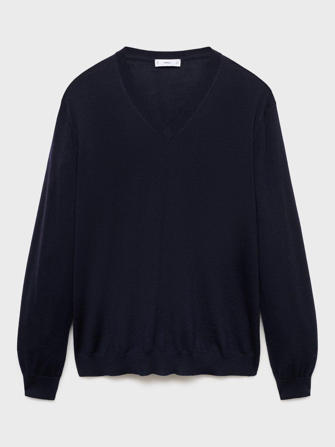 MangoWilly Wool V-Neck Jumper, Navy, XXL