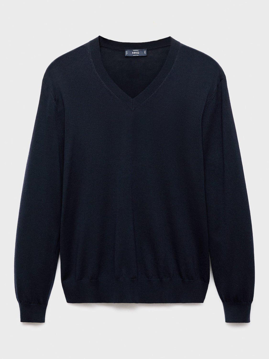 MangoWilly Wool V-Neck Jumper, Navy