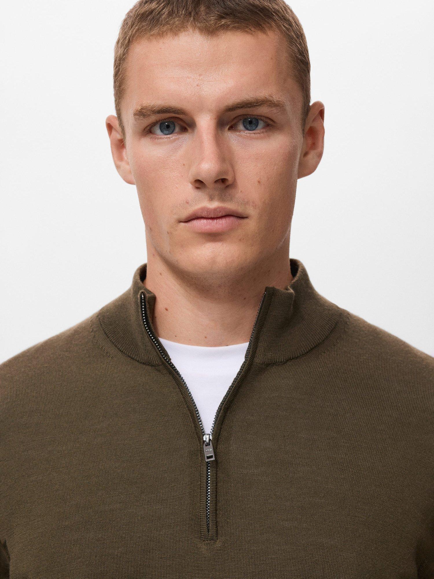This pure merino wool zip neck jumper keeps you warm without feeling heavy. Its comfortable fit and smooth finish make it ideal for layering at work or out and about.