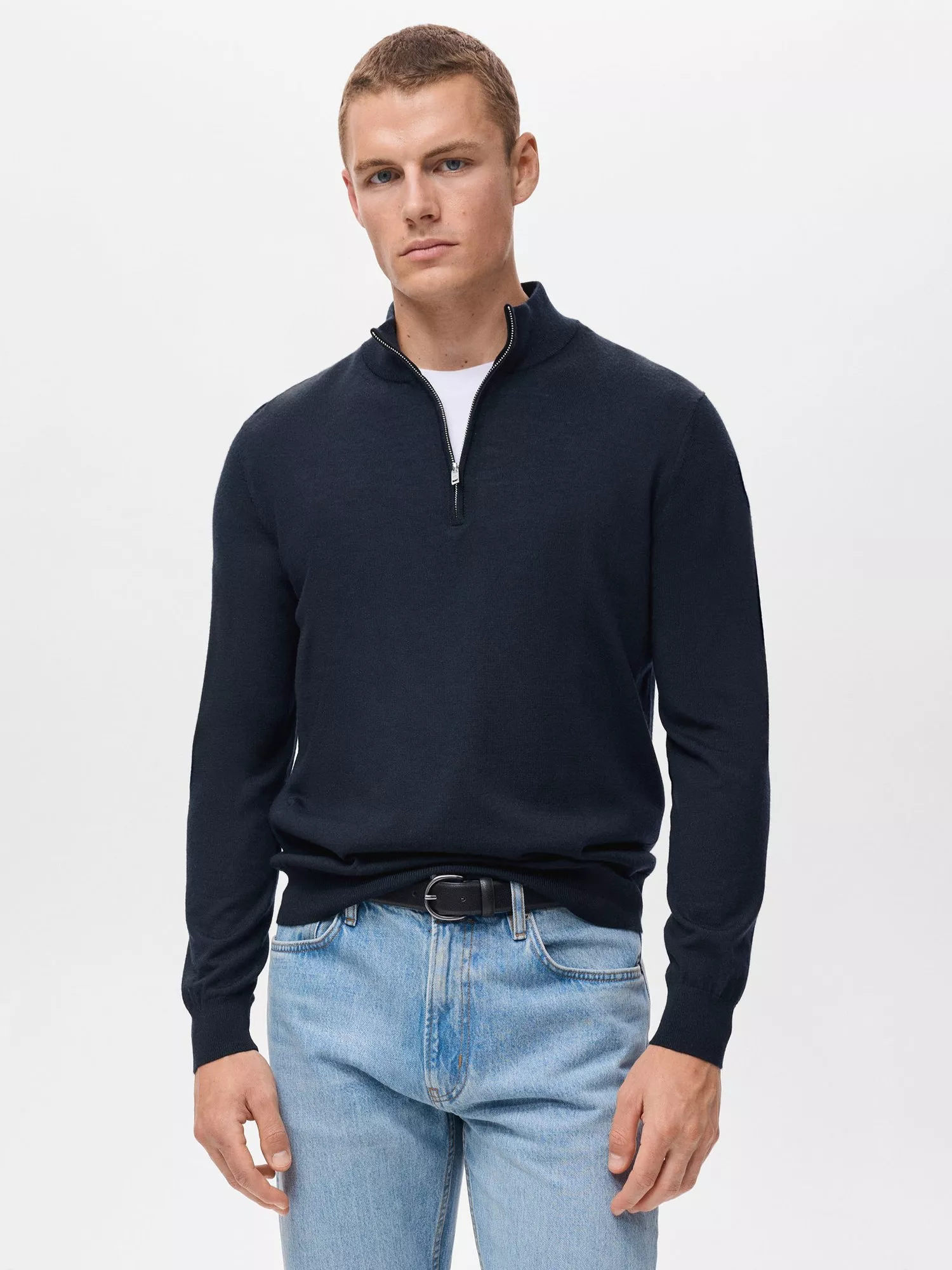 This pure merino wool zip neck jumper keeps you warm without feeling heavy. Its comfortable fit and smooth finish make it ideal for layering at work or out and about.